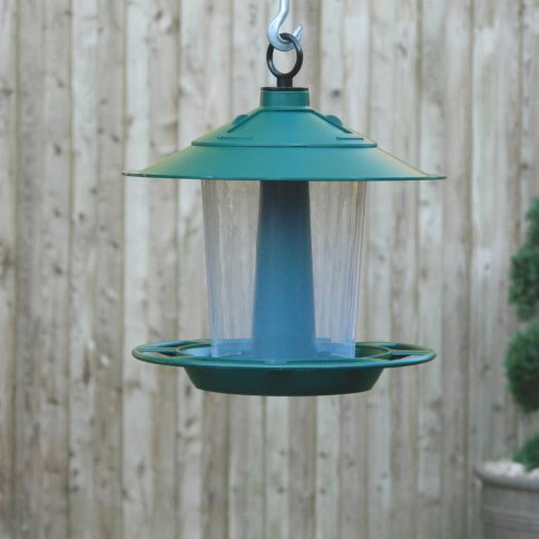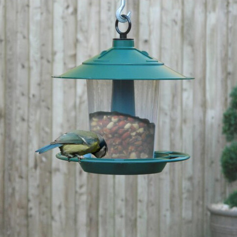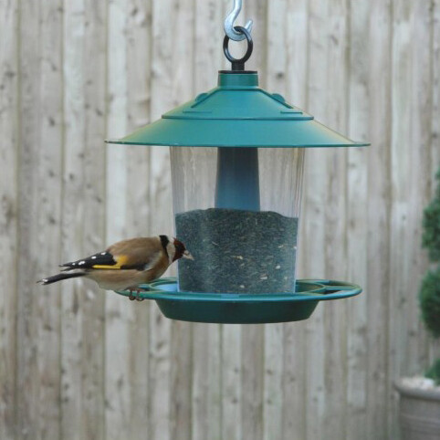 De vogels kunnen vanaf de voorziene zitrand de zaden uit het opvangbakje oppikken. De voedersilo is makkelijk aan te vullen door de opening van het dak. Draai hiervoor het dak naar links of naar rechts.