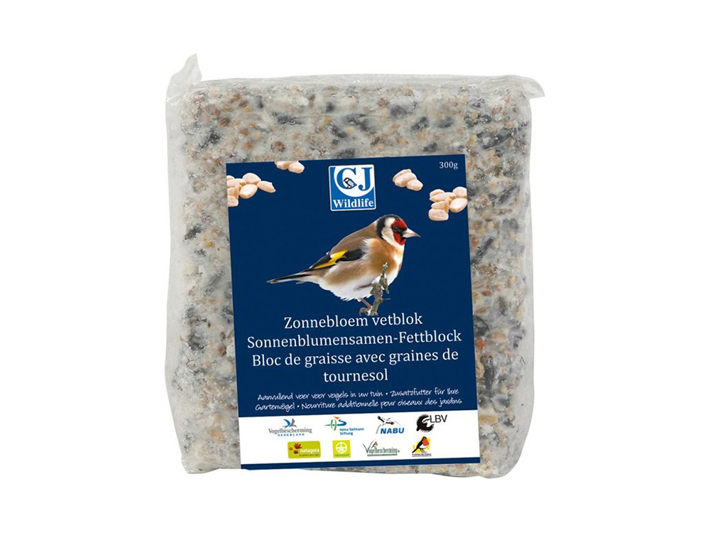 Deze vetblok met zonnebloempitten is een uitstekende wintervoeding voor alle tuinvogels. Hij past uitstekend in een standaard vetblokkorf en zal verschillende tuinvogels aantrekken!