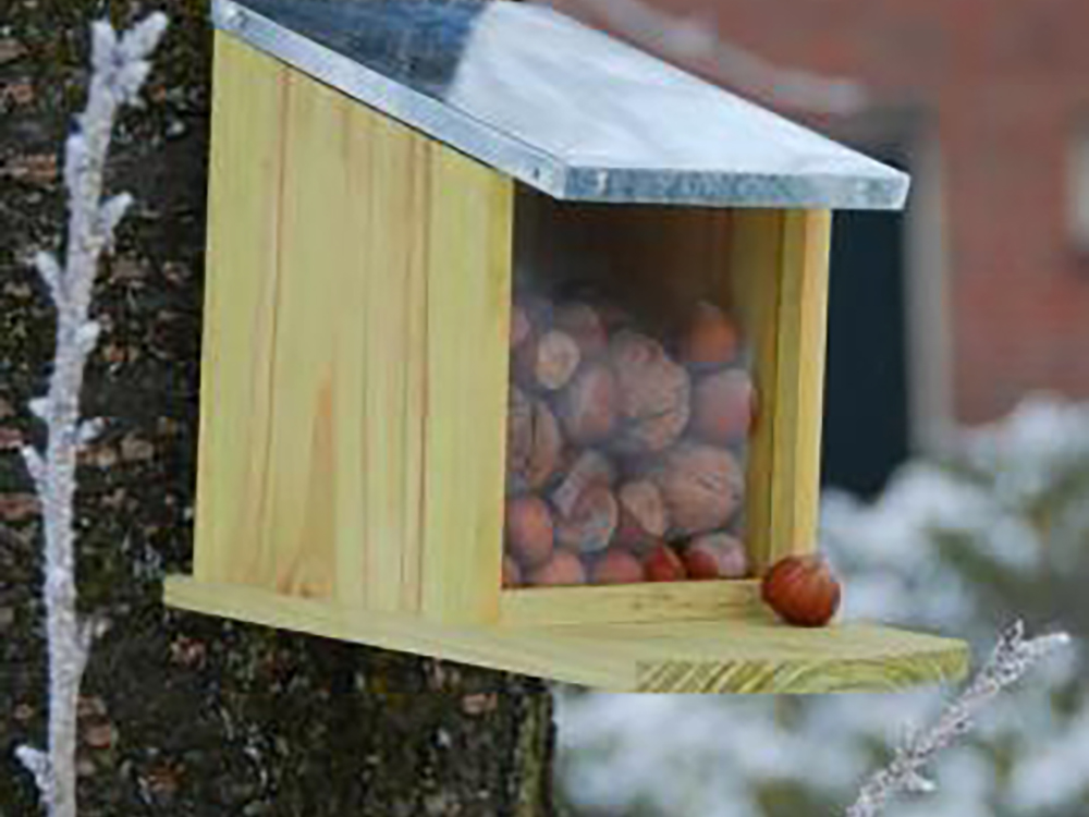 In korte tijd ontdekken eekhoorns hoe ze het dakje van het voederhuis kunnen openen om bij het voer te komen. Bovenal laten de eekhoortjes zich makkelijker observeren wanneer ze aan het eten zijn. Het huisje kun je vullen met allerlei noten, zonnebloempitten of met een speciale eekhoorn voedermix.