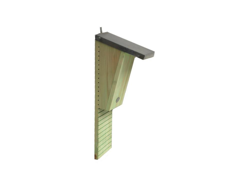 Het hout is behandeld en het dak is afgewerkt met zink waardoor de nestkast bestand is tegen heel wat weersinvloeden. Door de speciale inkepingen in het hout, hebben de vliegende zoogdieren een betere grip, en komen ze de nestkast makkelijker binnen.