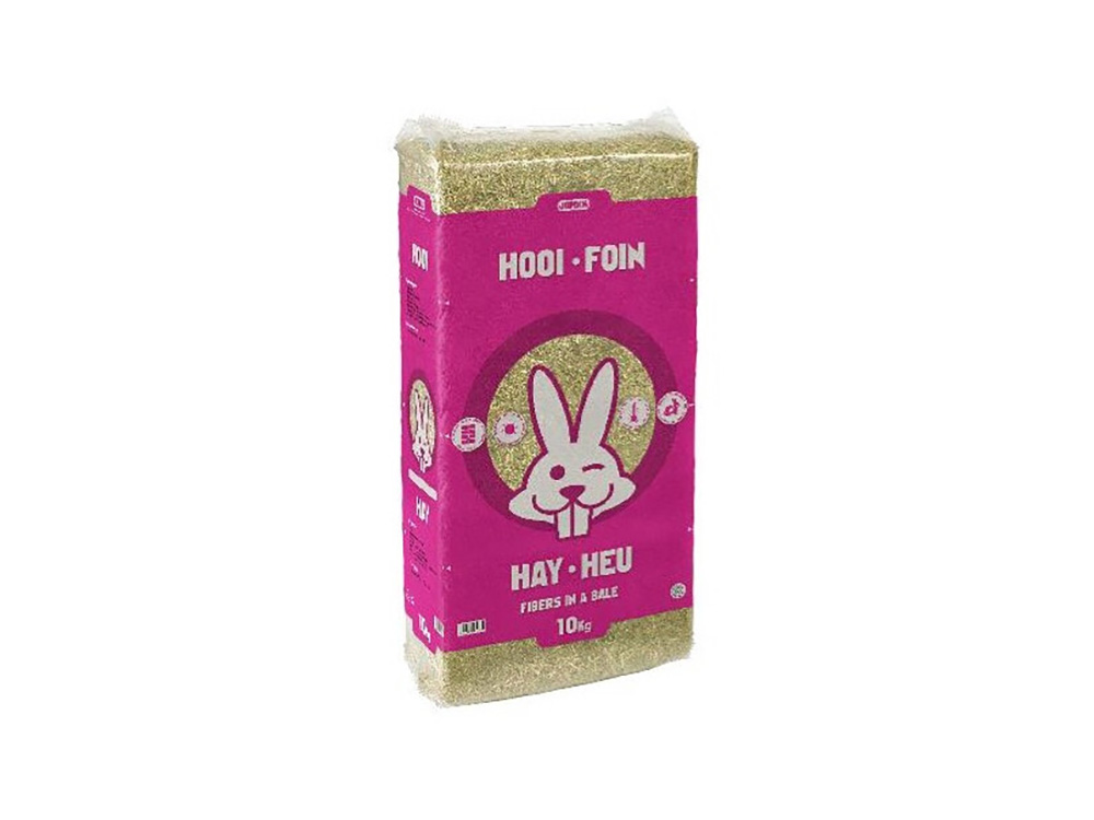 Hooi ondersteunt de gezonde spijverstering van konijnen en andere knaagdieren. Het zorgt voor de nodige voedingsvezels en is dus een essentieel onderdeel van hun dagelijkse voeding. Bovendien houdt hooi het gebit gezond en de tanden kort.