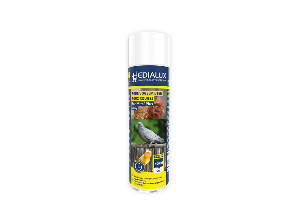 For-Mite® Plus is een spuitbus voor de bestrijding van rode vogelmijt of bloedluis in kleine vogelkooien (bv: duiven-, kanarie-, parkieten-, kippenhokken, etc.). De spuitbus kan gesproeid worden op alle oppervlakken van het hok. Belangrijk is om vooral spleten en holten te behandelen daar waar de mijten zich kunnen verschuilen.