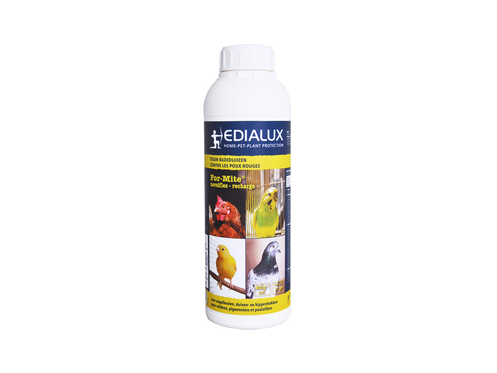 For-Mite is een gebruiksklare antiparasitaire spray voor de bestrijding van vlooien en rode luizen in volières van alle soorten en maten (duiventil, kippenhok, kanaries, parkieten, ...)