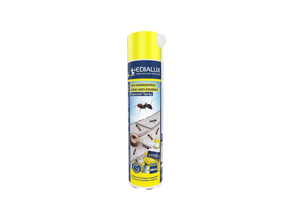 Topscore Spray van Edialux is een krachtige spuitbus voor het bestrijden van mieren en andere kruipende insecten in en rond woon-, werk- en verblijfsruimten.