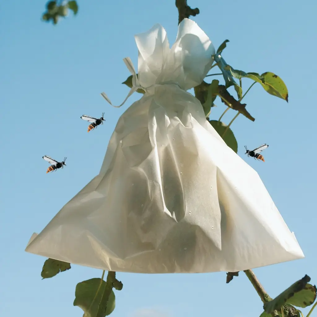 Fruithoes als biologische bescherming van fruit tegen insecten (wespen, vliegen, larven) en vogels. De fruithoezen zijn ideaal om jouw druiven, appels, peren,... doeltreffend te beschermen tegen wespen, vliegen, vogels en ander ongedierte dat de vruchten beschadigt of opeet.