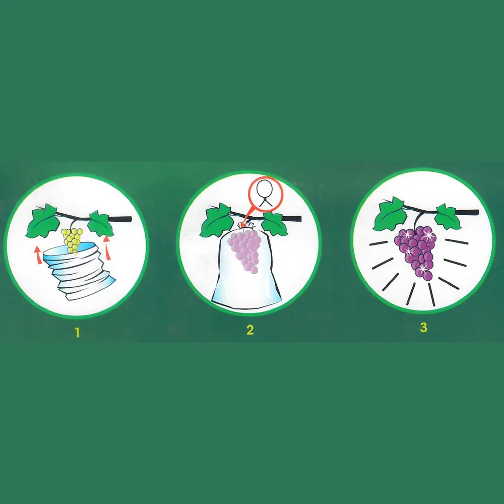 Dankzij deze hoezen geniet je zelf van jouw lekker fruit en heb je veel minder last van wespen die massaal rond het fruit vliegen en het stuk bijten. Deze zakken of hoezen zijn gemaakt van een zacht micropapier met ultrafijne perforaties en beschadigen het fruit dus niet. Bovendien rijpen de druiven beter in de hoezen doordat de temperatuur iets hoger is binnenin deze zakken.