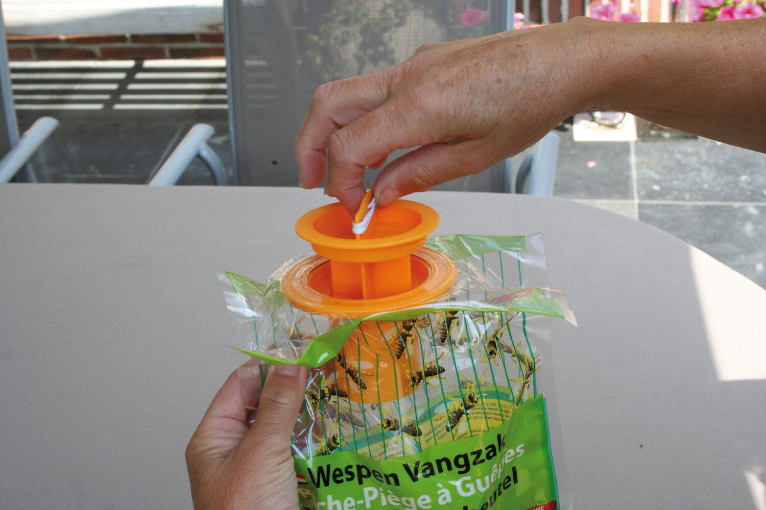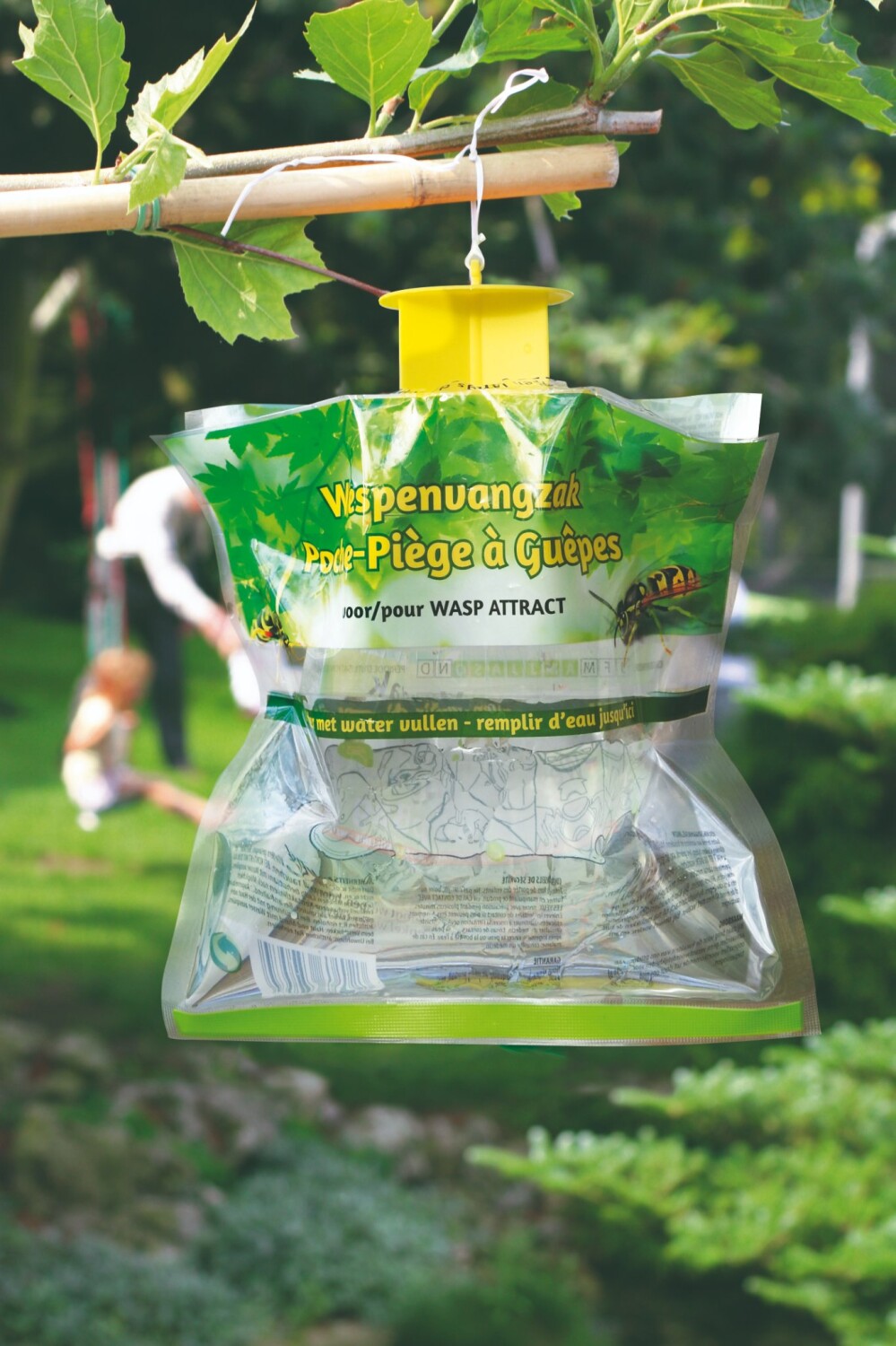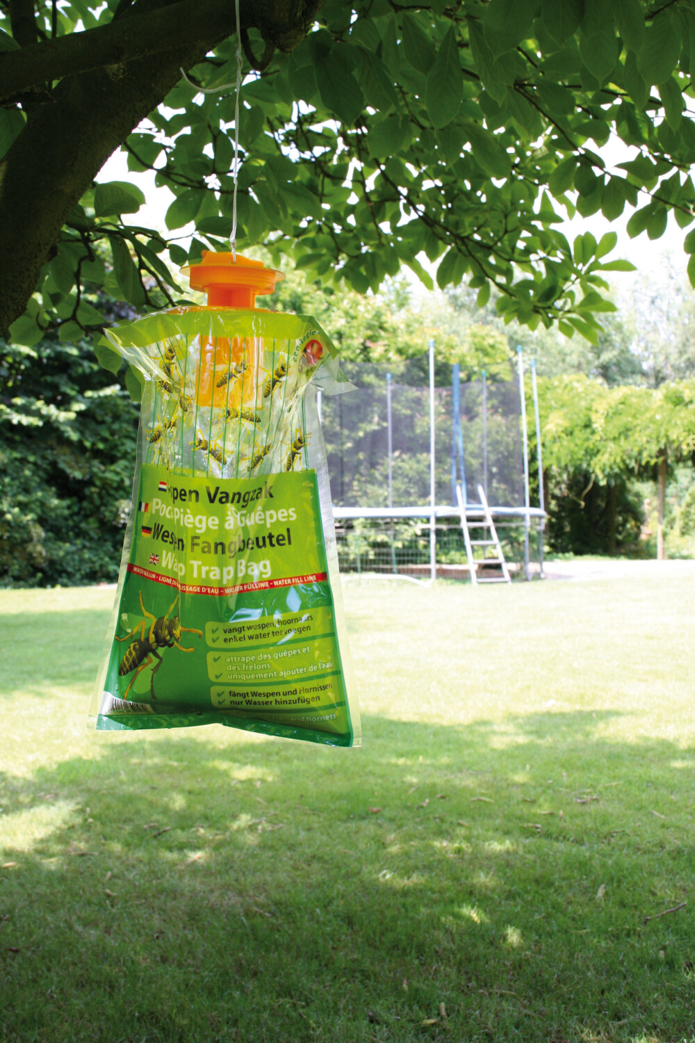 Wespen en hoornaars zullen tot de lokstof worden aangetrokken en in de zak terecht komen. Eenmaal in de zak kunnen ze er niet meer uit, en sterven zo door hitte en verdrinking!