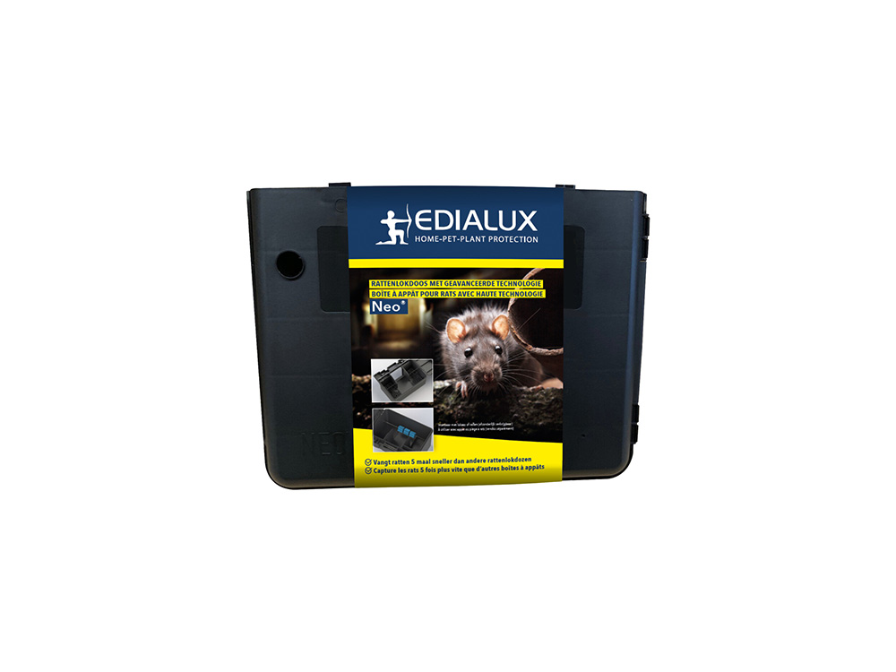Neo is de nieuwe generatie rattenlokdoos. De unieke opening van deze rattenvoederdoos zorgt ervoor dat de poten van de rat in contact blijven met de natuurlijke ondergrond en de gebruikelijke looplijn van de rat.