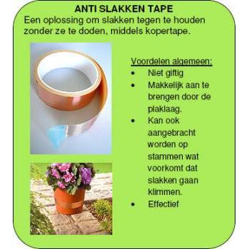 Kopertape houdt slakken tegen tijdens hun kruiptocht naar jouw planten. Als een slak langs de pot naar boven kruipt en de kopertape aanraakt, voelt ze een klein schokje en maakt rechtsomkeer. Ze raken er niet overheen tot bij jouw geliefde hosta's en andere planten die anders door slakken worden opgevreten.