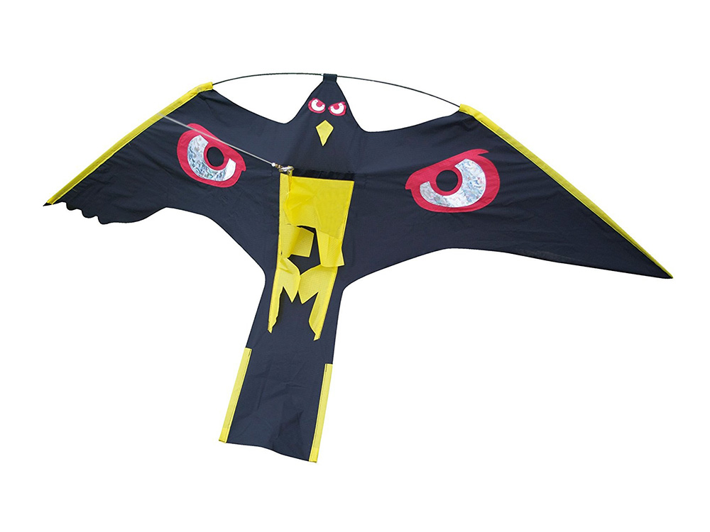 De grote zwarte vogels zijn voorzien van afschrikwekkend grote, rode en reflecterende ogen. De Kite Hawk wordt geleverd met een stevige telescopische paal in glasvezel van 7 meter waaraan je de vogels bevestigd. Er wordt ook een grondanker meegeleverd. Dit maakt de Kite Hawk ideaal voor het beschermen van oa gewassen, boomgaarden, pas gezaaide gazons, vijvers,...