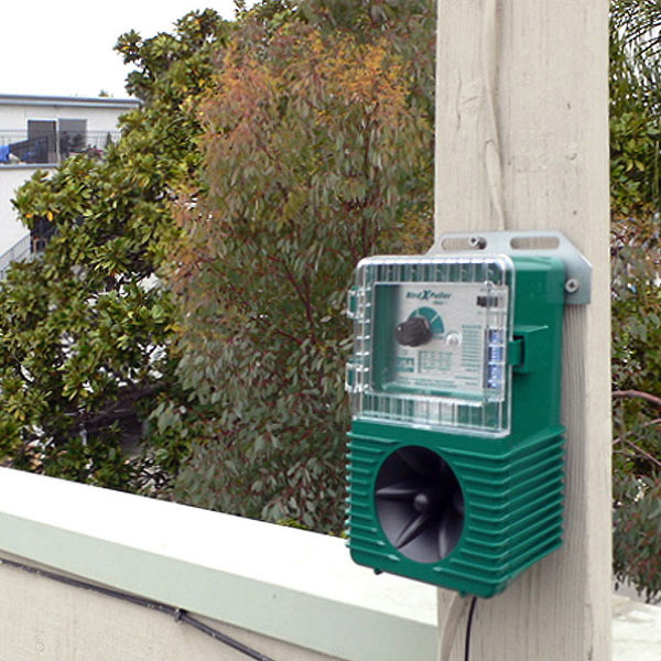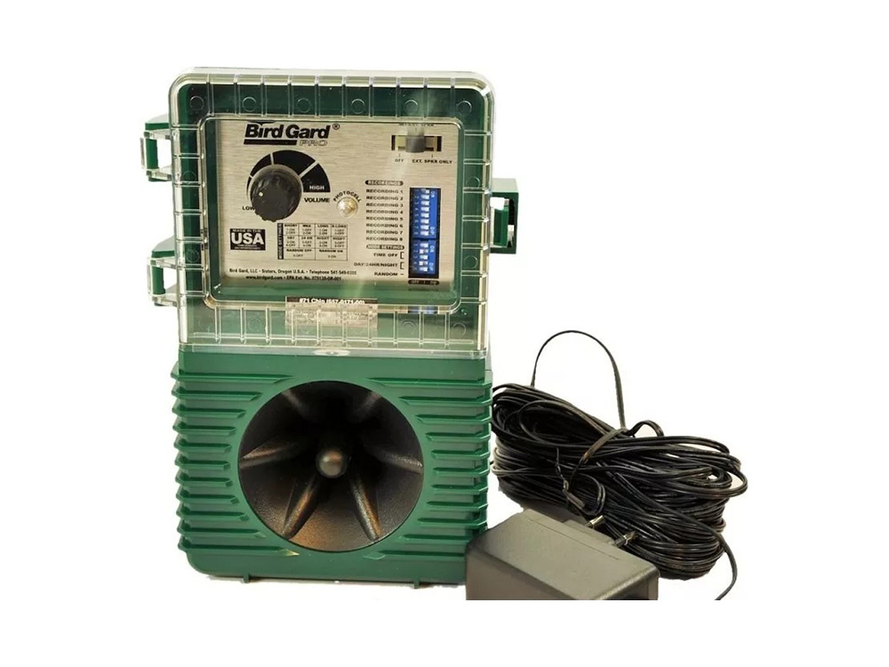 Deze professionele vogelverjager met een bereik tot 6000 m² maakt 8 verschillende geluiden van roofvogels en noodkreten van de te verjagen kraaien. Instelbaar in volume, lengte, soort vogel, tijdklok, willekeurig tijdstip (dag, nacht, 24 uur). De opgenomen vogelgeluiden zijn paniekroepen van kraaien. Wanneer een andere kraai die noodkreten hoort, zal deze snel vluchten omdat ze denkt dat ze in gevaar is. Andere opgenomen geluiden zijn die van roofvogels, waardoor bepaalde vogelsoorten ook zullen vluchten omdat ze gevaar vermoeden.