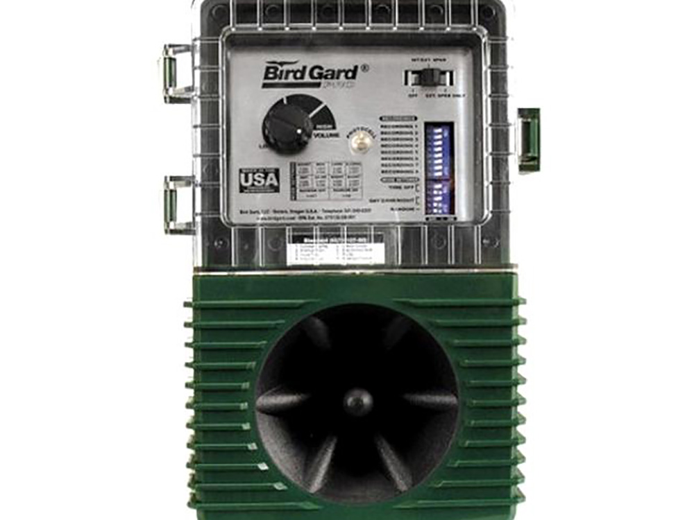 Deze professionele vogelverjager met een bereik tot 6000 m² maakt 8 verschillende geluiden van roofvogels en noodkreten van de specifiek te verjagen vogels. Instelbaar in volume, lengte, soort vogel, tijdklok, willekeurig tijdstip (dag, nacht, 24 uur). De opgenomen vogelgeluiden zijn paniekroepen van de desbetreffende vogelsoort. Wanneer een vogel van dezelfde soort die noodkreten hoort, zal hij vluchten omdat hij denkt dat hij in gevaar is. Andere opgenomen geluiden zijn die van roofvogels, waardoor bepaalde vogelsoorten ook zullen vluchten omdat ze gevaar vermoeden.