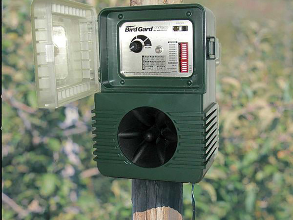 Deze professionele vogelverjager met een bereik tot 6000 m² maakt 8 verschillende geluiden van roofvogels en noodkreten van de specifiek te verjagen vogels. Instelbaar in volume, lengte, soort vogel, tijdklok, willekeurig tijdstip (dag, nacht, 24 uur). De opgenomen vogelgeluiden zijn paniekroepen van de desbetreffende vogelsoort. Wanneer een vogel van dezelfde soort die noodkreten hoort, zal hij vluchten omdat hij denkt dat hij in gevaar is. Andere opgenomen geluiden zijn die van roofvogels, waardoor bepaalde vogelsoorten ook zullen vluchten omdat ze gevaar vermoeden.