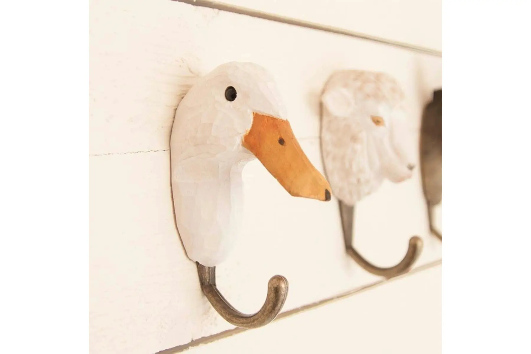 Bij deze prachtige ophanghaak valt de mooie gele snavel van de witte kwaker meteen op.