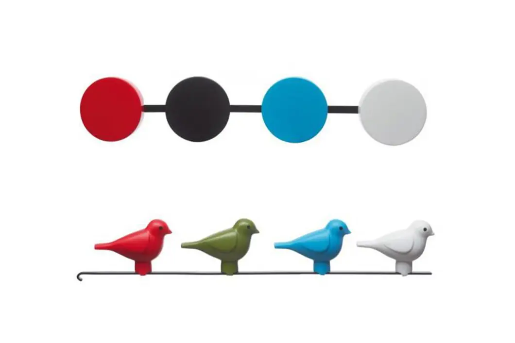 De klok wordt geleverd met 4 gewichten (rood, blauw, zwart en wit) en 4 vogeltjes (rood, groen, blauw en wit) zodat je je klok kan aanpassen aan jouw eigen smaak of interieur.