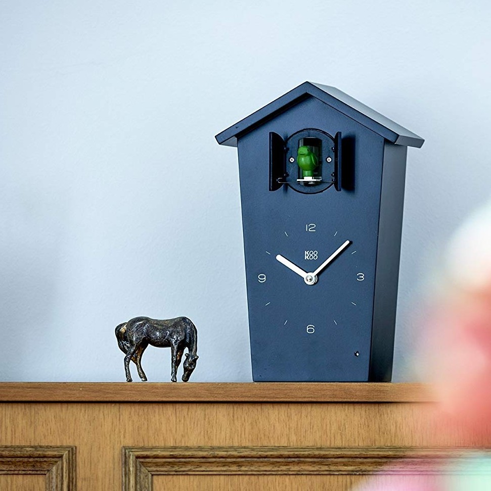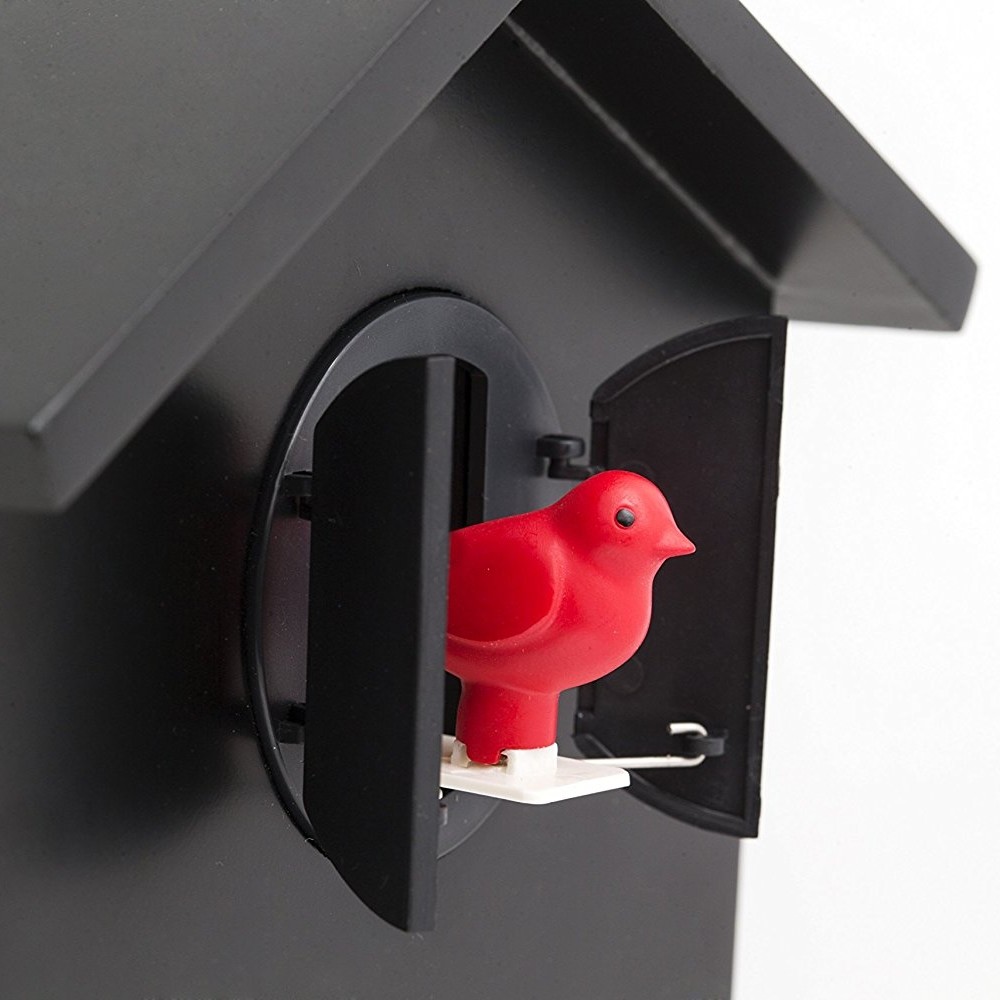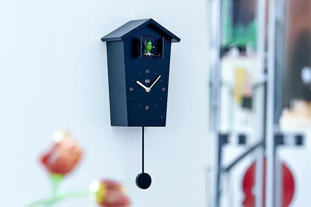 Superleuke, moderne koekoeksklok met slinger van het Duitse merk KooKoo. Het design is duidelijk, strak en puur! Elk uur komt er een vogel naar buiten en roept een of meerdere keren, afhankelijk van het uur. Je kan daarbij kiezen uit 12 authentieke vogelgeluiden of de roep van een koekoek. Een ingebouwde lichtdetector zorgt voor een stille nacht in de BirdHouse klok.