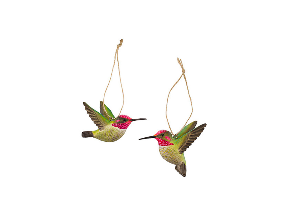 De authentieke, uit hout gesneden kolibries brengen de schoonheid van de natuur bij je thuis. Deze twee levensechte kolibries zijn handgemaakt en hebben elk een houding die typeert voor deze vogel. Hun kleurrijke verenkleed is geschilderd met milieuvriendelijke verf. Met het voorziene haakje kunnen ze makkelijk in het interieur worden opgehangen.