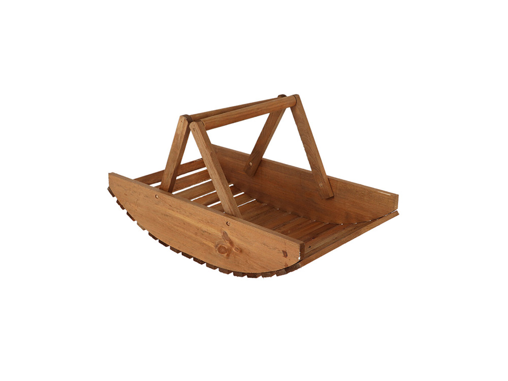 De bloemenplukmand is vervaardigd in hout en is voorzien van het opschrift 'Flower trug'. Het hout heeft een bruine tint maar zal na verloop van tijd onder invloed van zonlicht een natuurlijke grijze patine krijgen.