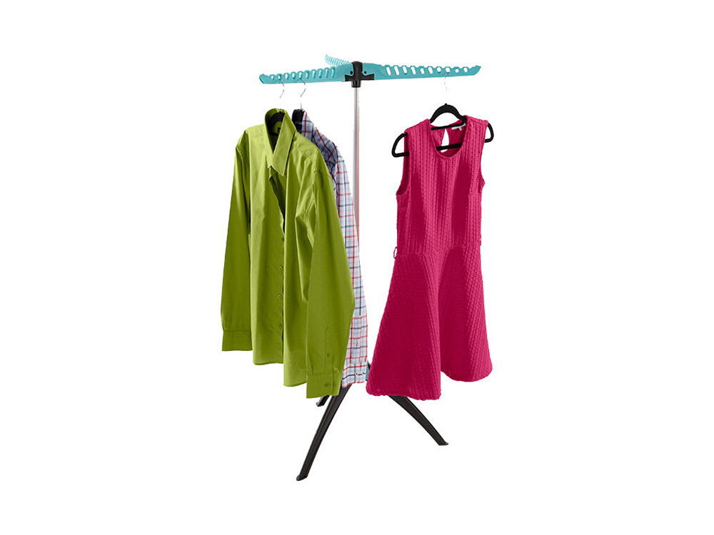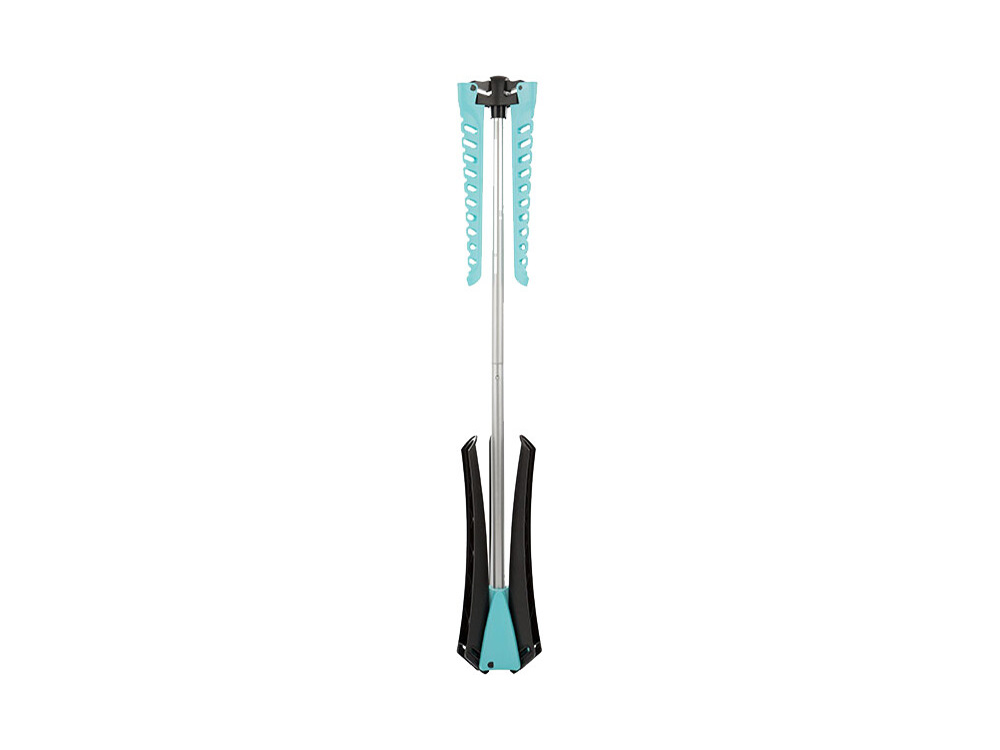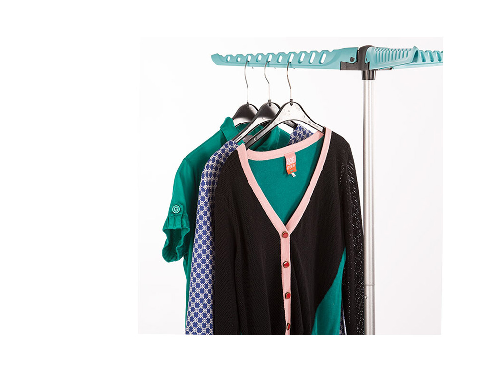 Een 3-armige droogmolen Nice'n Easy met een hoogte van 128 centimeter die voorzien is van een stevige uitklapbare voet. Elke arm heeft 11 ophangogen waardoor er in totaal 33 kleerhangers kunnen bevestigd worden. Deze lichtgewicht droogmolen is gemaakt uit aluminium en is na gebruik makkelijk op te vouwen en compact terug op te bergen. Zo kan hij overal worden meegenomen, zelfs naar de camping.