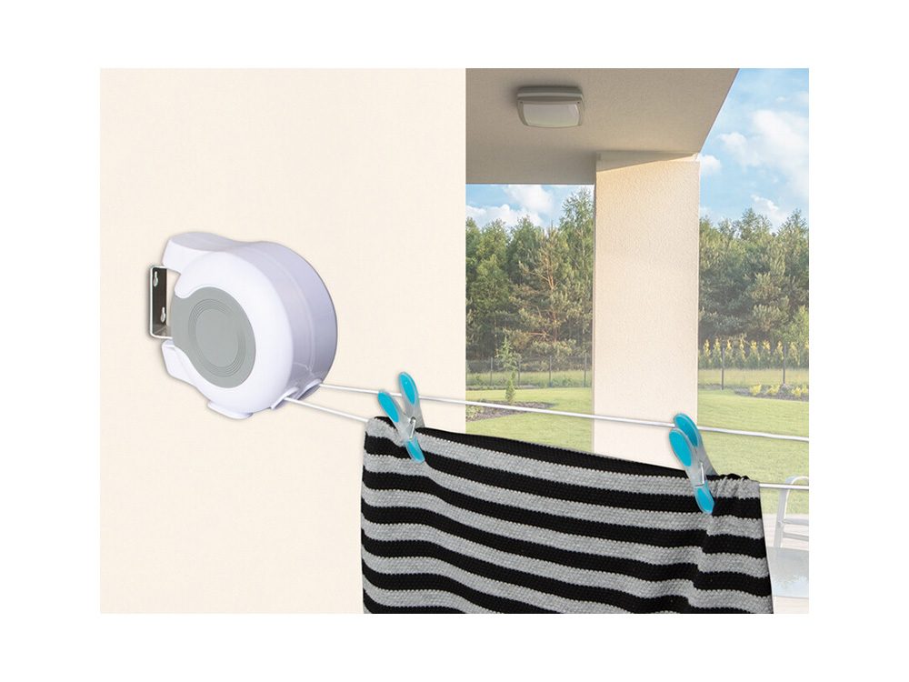 Met de uitrekbare waslijn wordt de was uithangen een eenvoudige klus. Dankzij deze ruimtebesparende oplossing kan je zelfs je was drogen op het kleinste plekje op je terras of balkon. De 2 waslijnen bieden samen 26 meter droogruimte. De pivoterende muurbeugel zorgt ervoor dat je de waslijn kunt wegdraaien tegen de muur wanneer deze niet wordt gebruikt.