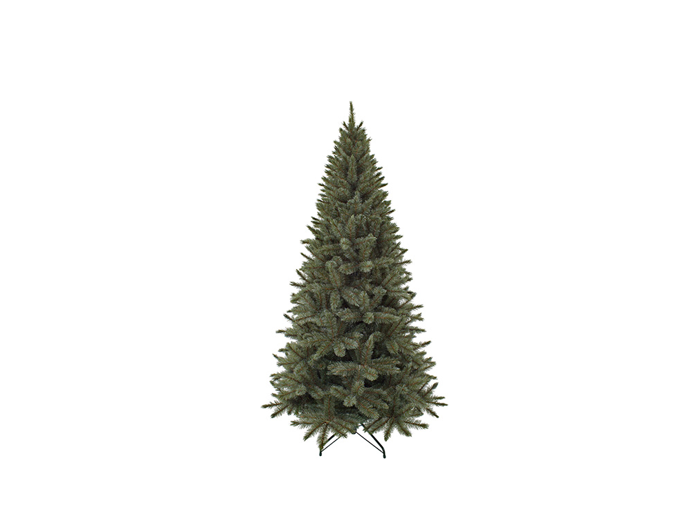 De takken hebben een natuurlijke bruine kleur met stevige PVC-naaldjes, niet te ondescheiden van een echte den door de donkerblauwgroene tint. De slanke vorm maakt hem perfect voor kleine ruimtes, waar hij eenmaal versierd dezelfde sfeer brengt als een echte kerstboom.