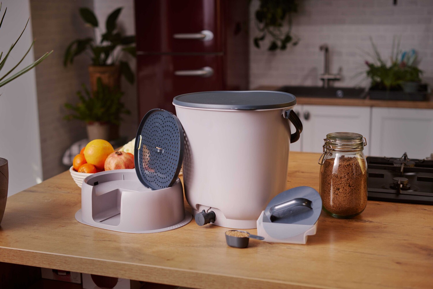 Het bijgevoegde strooisel voor biologisch afval activeert het fermentatieproces in de compostemmer en de doeltreffende organismen voorkomen rotting en onaangename geuren. Bokashi zorgt voor een goede basis voor compost van hoogstaande kwaliteit. Onderaan de emmer is een kraantje voorzien voor het aftappen van fermentatiesap. Dit kan onder andere gebruikt worden om afvoeren proper te houden. Verdund is het een goede voedingsstof voor planten.