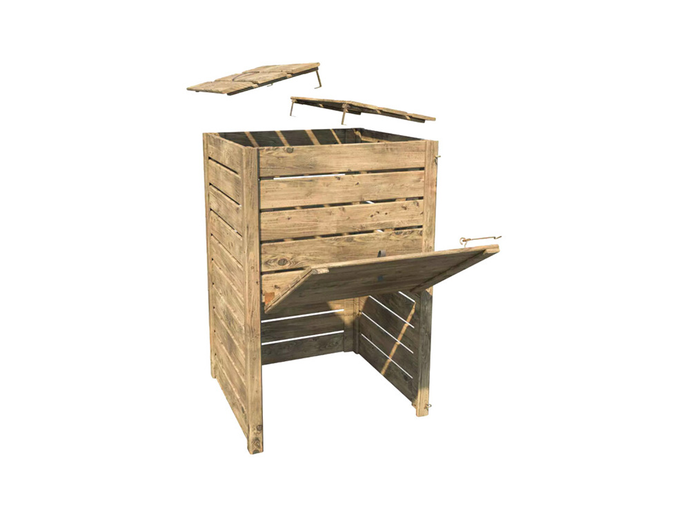 Met een tweedelige opening biedt deze compostbak een praktische oplossing voor het deponeren van afval. De hoogwaardige materialen garanderen een uitzonderlijke duurzaamheid en zorgen dat het perfect past in je buitenruimte.