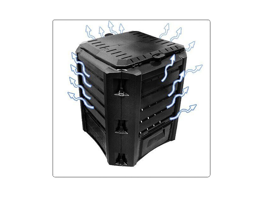 Dankzij het gebruik van panelen laat de compostbak voldoende zuurstof toe waardoor het proces versneld wordt. Bij het juiste gebruik verkrijg je al na enkele maanden een donkere naar bosgrond ruikende compost. De aangemaakte compost kan dadelijk gebruikt worden. Dit compostsysteem heeft geen bodem zodat de kleine beestjes vanuit de grond naar boven kunnen kruipen om jouw afval in compost om te zetten.