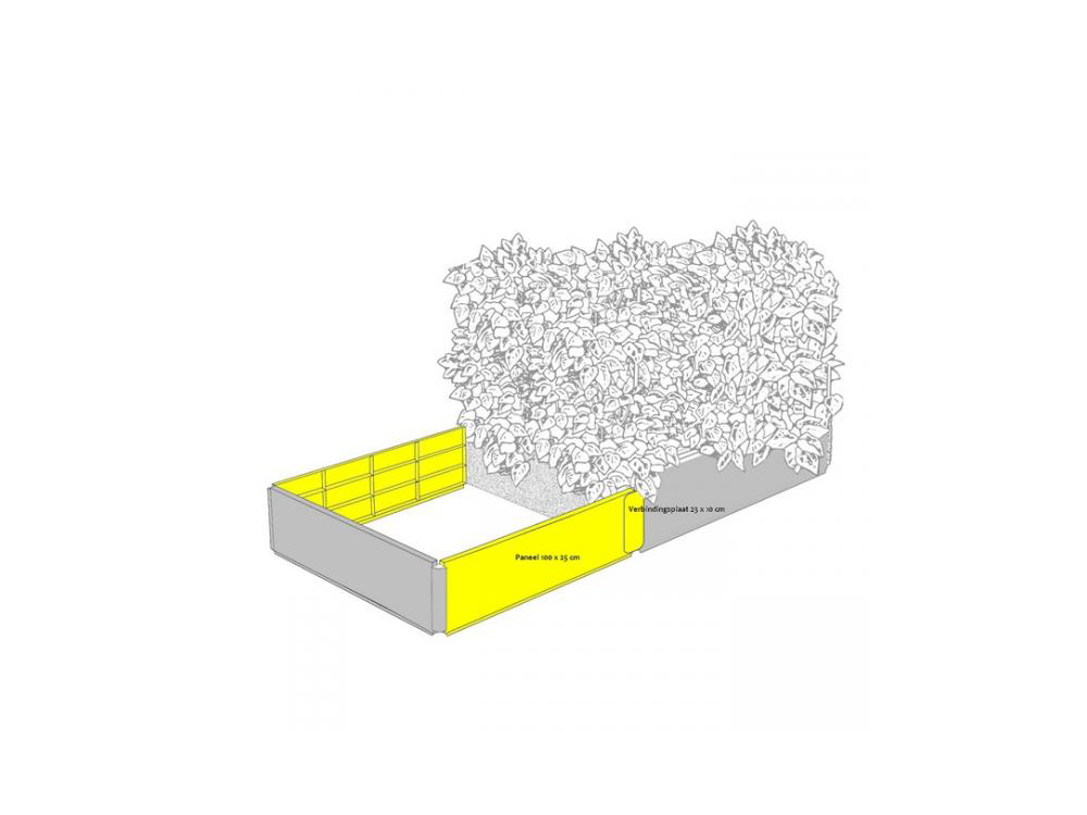 Deze set bevat twee kunststof panelen van 1 meter bij 25 centimeter, waarmee je de oppervlakte van je groeibed eenvoudig kunt verdubbelen. Twee verbindingsplaten van 23 x 10 x 0,4 centimeter en een ijzeren U-beugel zorgen voor extra stevigheid aan de lange zijden van het uitgebreide groeibed.