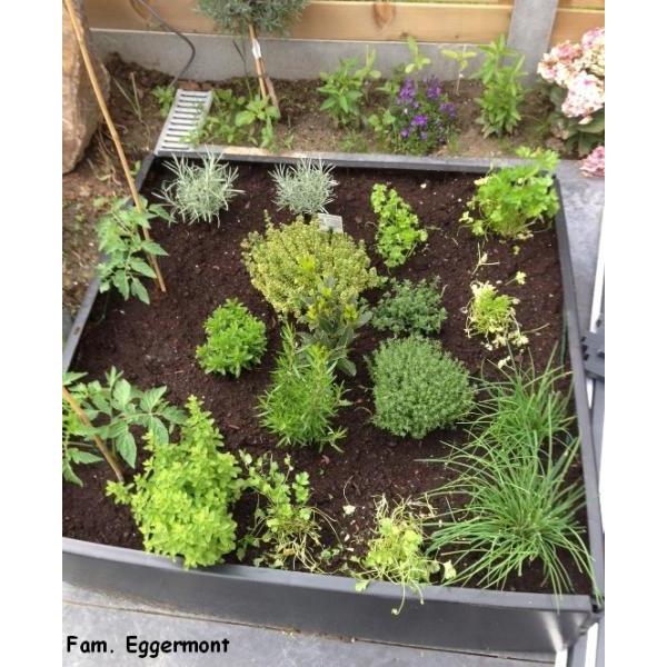 De hoogte van 25 cm is bijzonder geschikt voor diep wortelende groenten en knollen, zoals aardappelen, kolen, ajuinen, wortelen,... Dit verhoogde tuinbed is compact genoeg voor gebruik op terrassen of zelfs balkons.