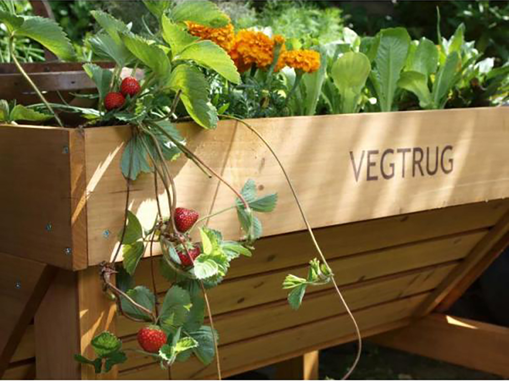 De VegTrug is een kweektafel van 1 meter lengte waarin je op stahoogte gewassen kan opkweken. Kunststof voetbeschermers tegen opstijgend vocht worden meegeleverd, alsook een passend ademend inlegdoek. In de kweektafel hebben planten veel minder last van slakken en vele andere soorten ongedierte.