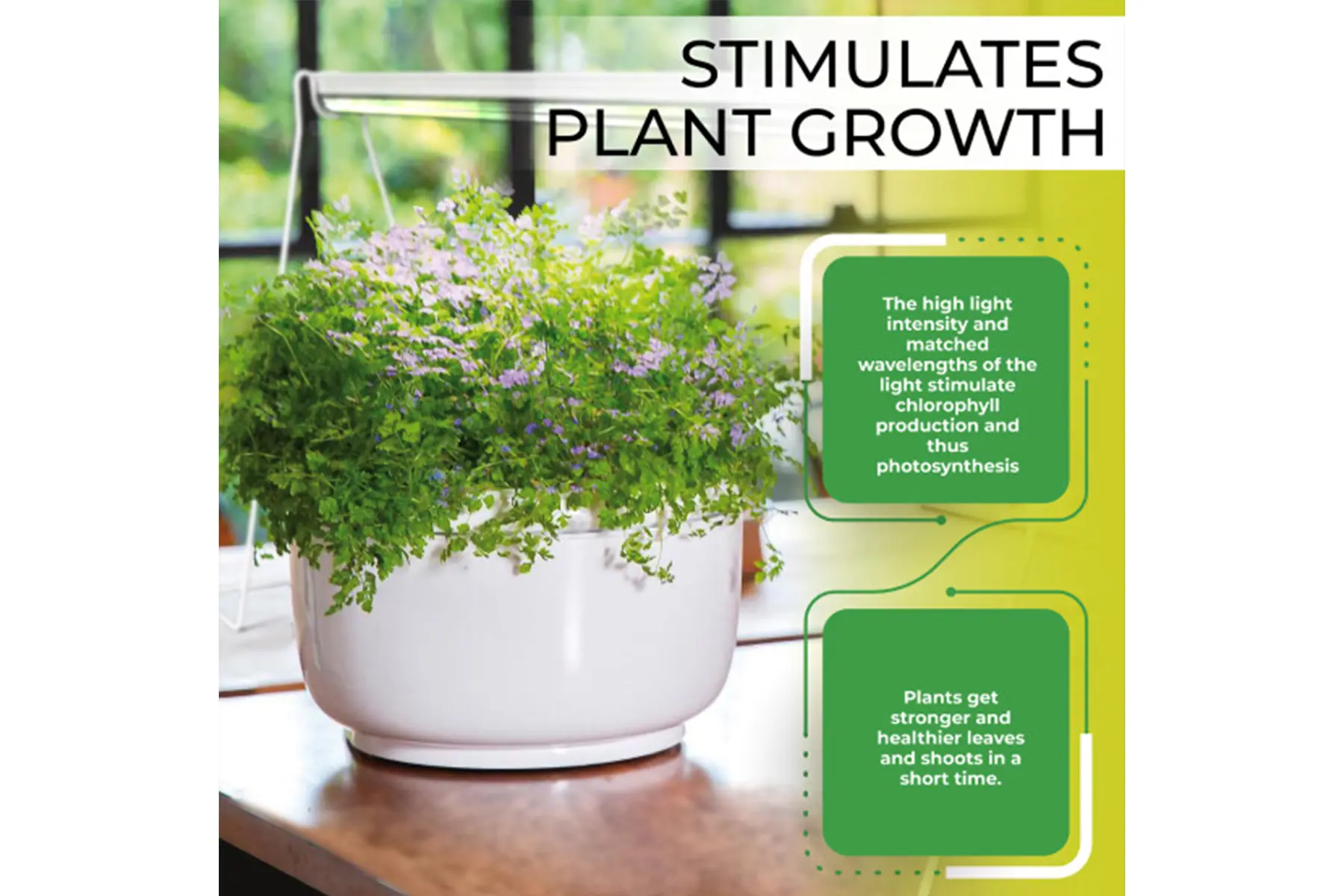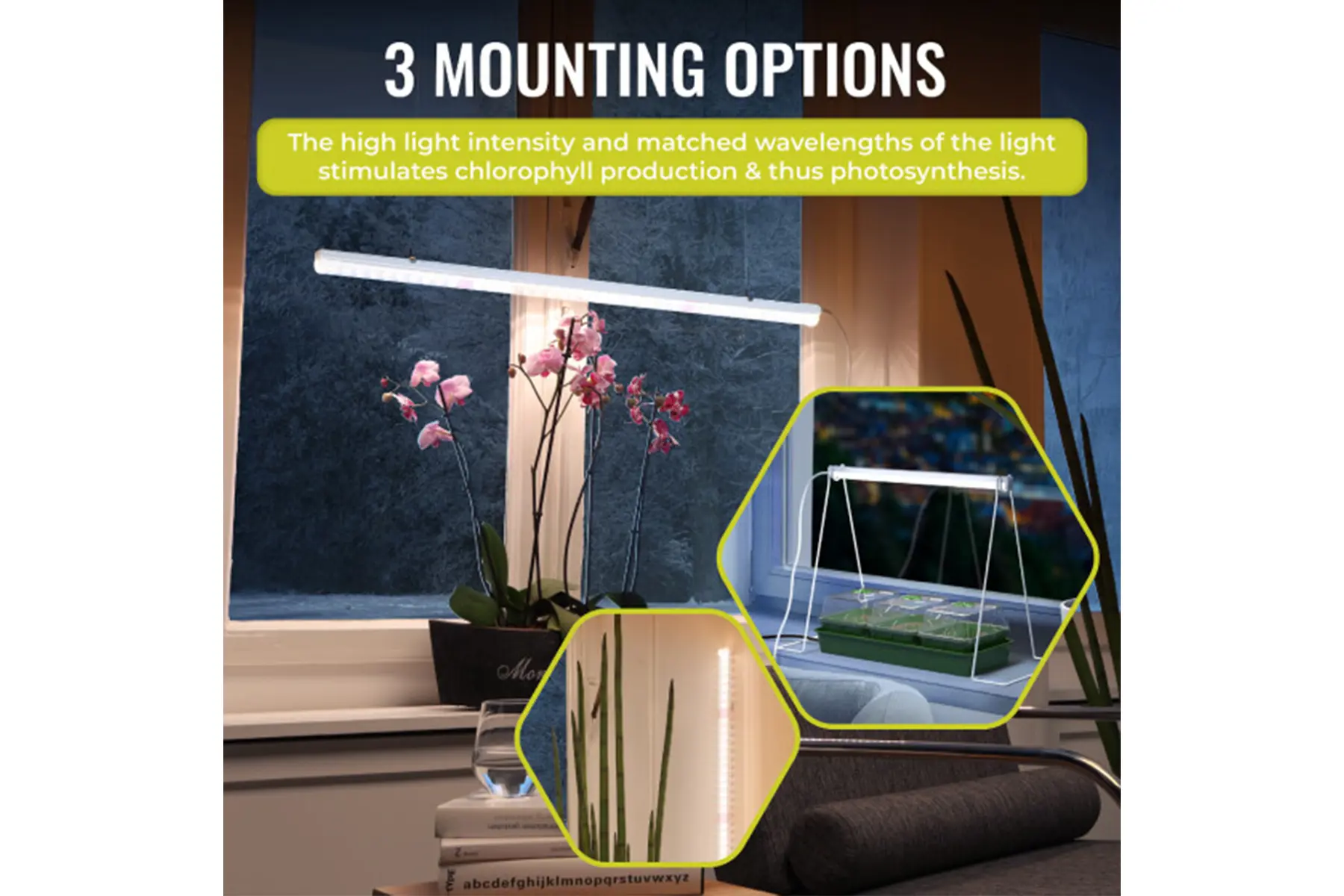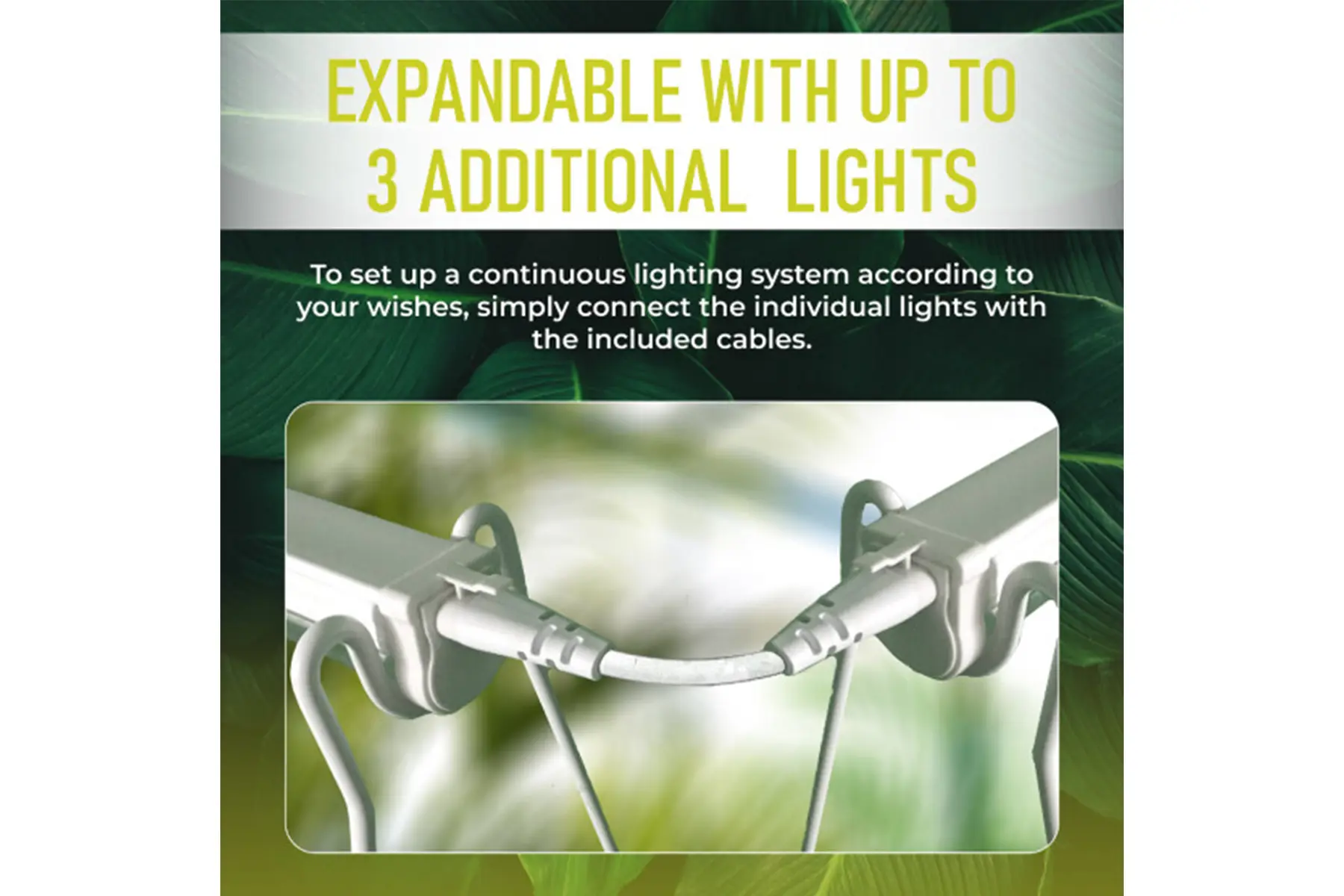 De led lichtstrip kan eenvoudig worden uitgebreid met drie extra lampen in serie zodat je een doorlopend verlichtingssysteem voor jouw planten kunt opzetten. Dankzij het verstelbare ophangsysteeem kan je de strips makkelijk ophangen zodat je ze in de optimale positie boven je planten kunt ophangen. Je kan ze ook eenvoudig aan de muur bevestigen om planten vanaf de zijkant te bestralen.