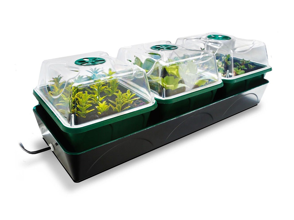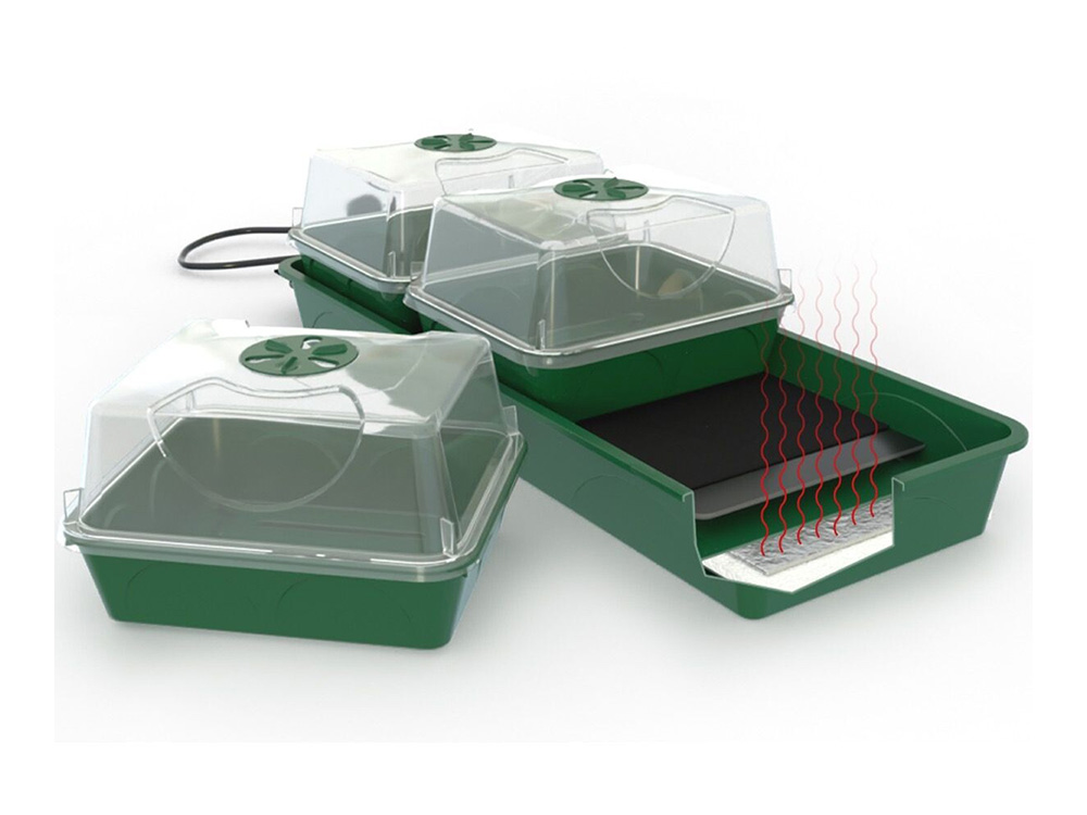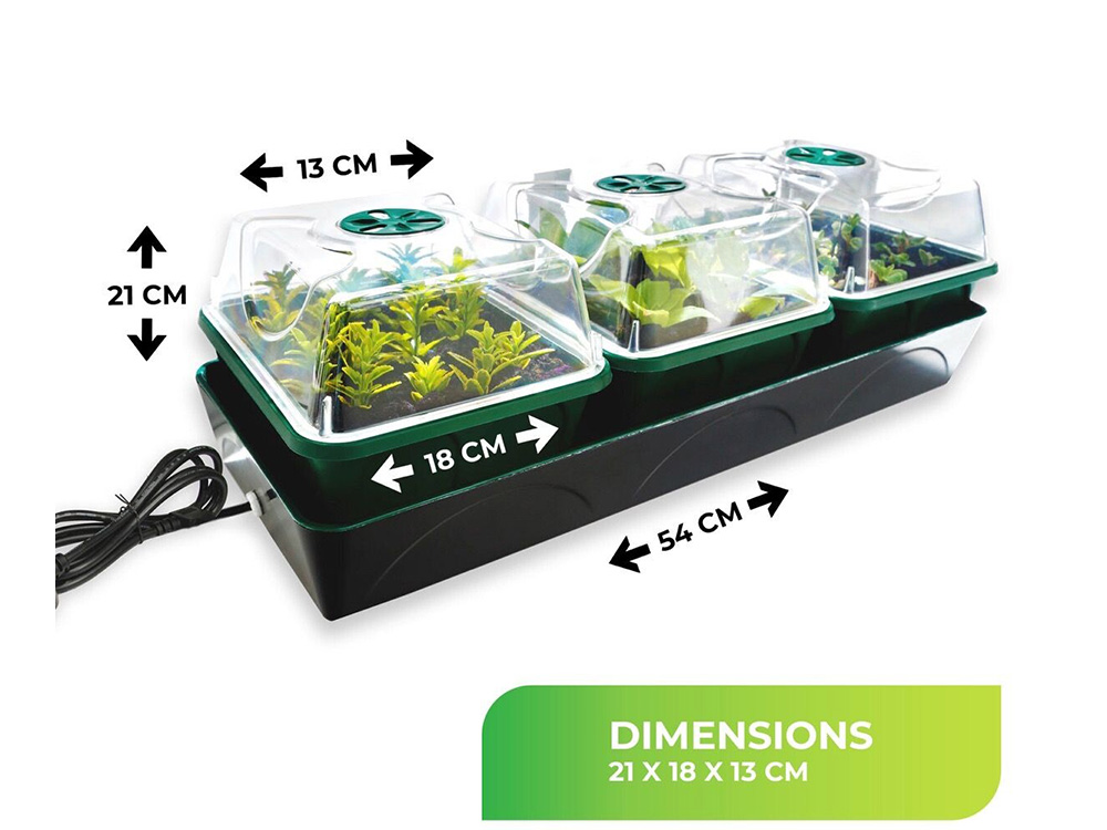 De set bestaat uit drie gelijke kweekbakjes. In de transparante deksels is er telkens een ventilatieschijf met verschillende verluchtingsstanden voorzien. Ideaal voor snellere en betere kieming bij zaaigoed of wortelvorming van stekken. De afzonderlijke kweekkasjes bieden een geïsoleerd kweekklimaat waardoor schimmels en ziekten geen kans krijgen alle zaailingen of stekken aan te tasten.