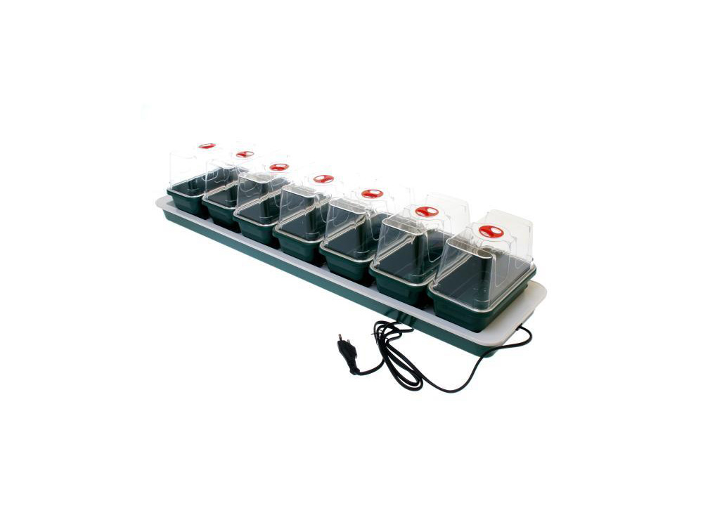Ideaal voor snellere en betere kieming van zaaigoed of wortelvorming van stekken. In de zeven afzonderlijk geventileerde kweekkasjes kan je eenvoudig meerdere soorten kweken. De verwarmde bodem bevat een 15 Watt carbonvezelelement voor een optimale warmteverspreiding. Dit apparaat is niet thermostatisch geregeld en is ontworpen om de omgevingstemperatuur / grondtemperatuur met ongeveer 8° C te verhogen wat de kieming en beworteling bevordert.