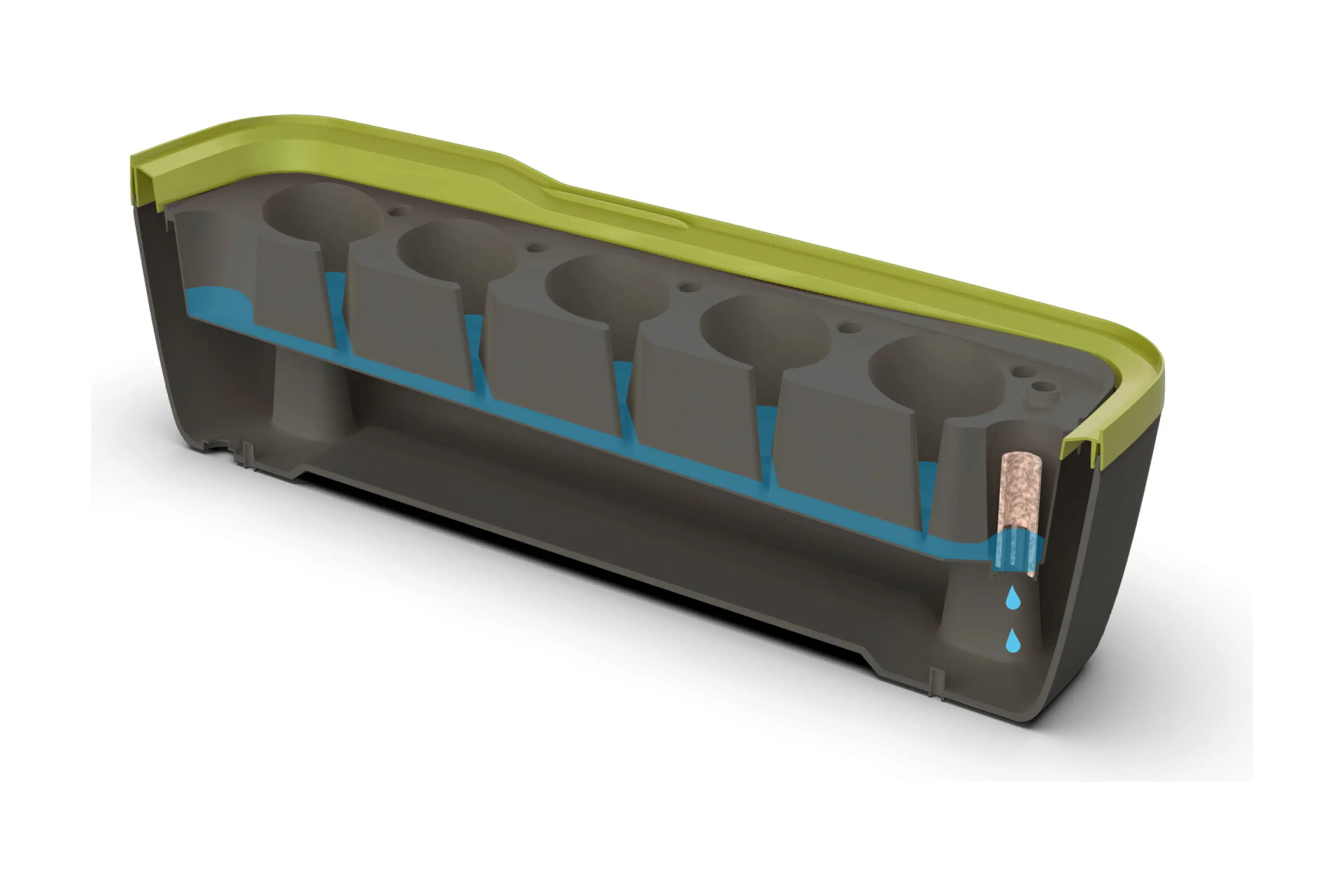 Eens de zaailingen groot genoeg zijn, kan de kweekkas in een handomdraai omgetoverd worden tot een plantbak door de tray er uit te nemen. Ook hier werd gezorgd voor een optimale afwatering van het overtollige gietwater.