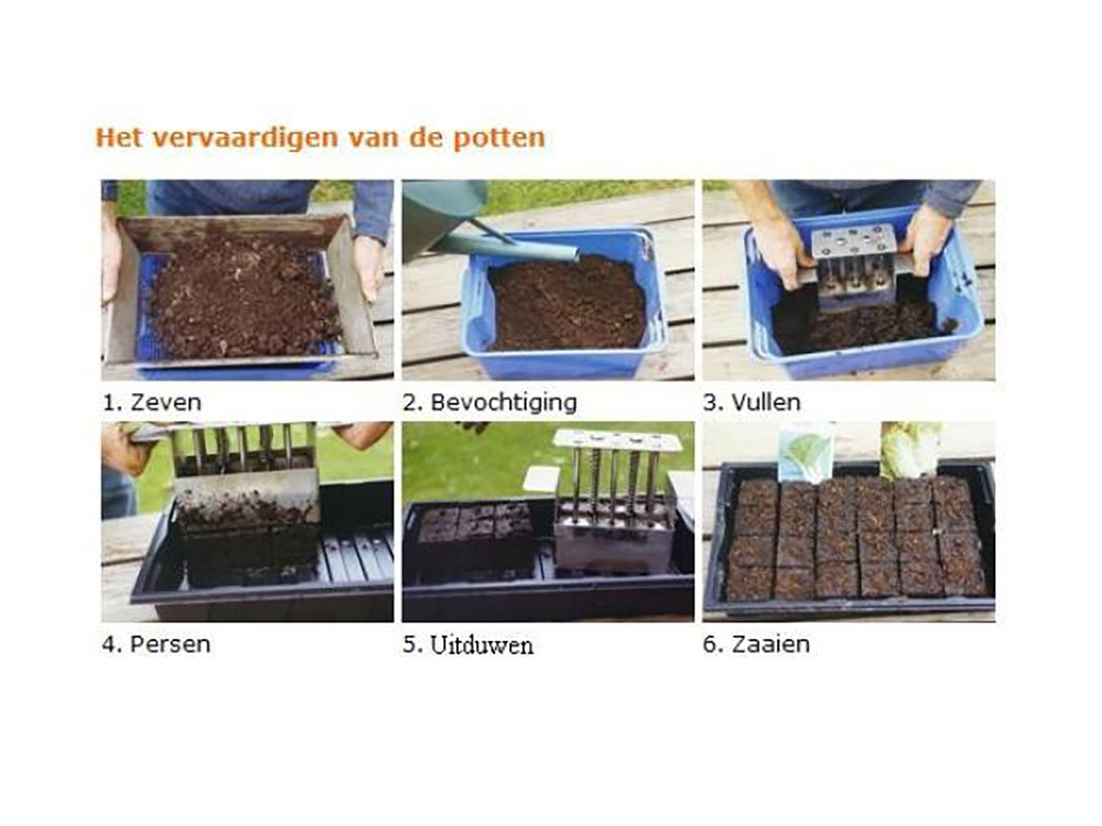 Pottenpers met 4 potten van 50 mm met uitholling van 6 mm voor de zaden.