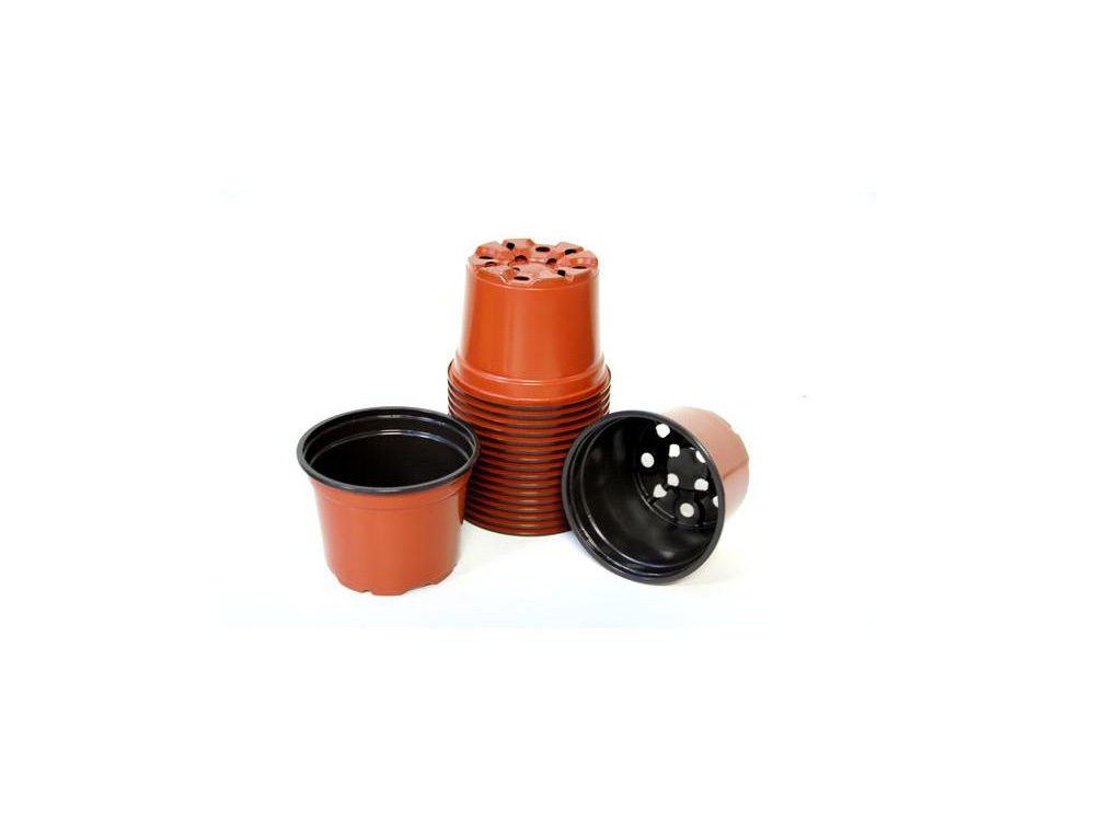 Bruine ronde potten met een eersteklas bodem voor optimale afwatering en ventilatie, ook voor irrigatie met irrigatiematten. Deze kwalitatieve kunststof kweekpotten kunnen meerdere keren hergebruikt worden.