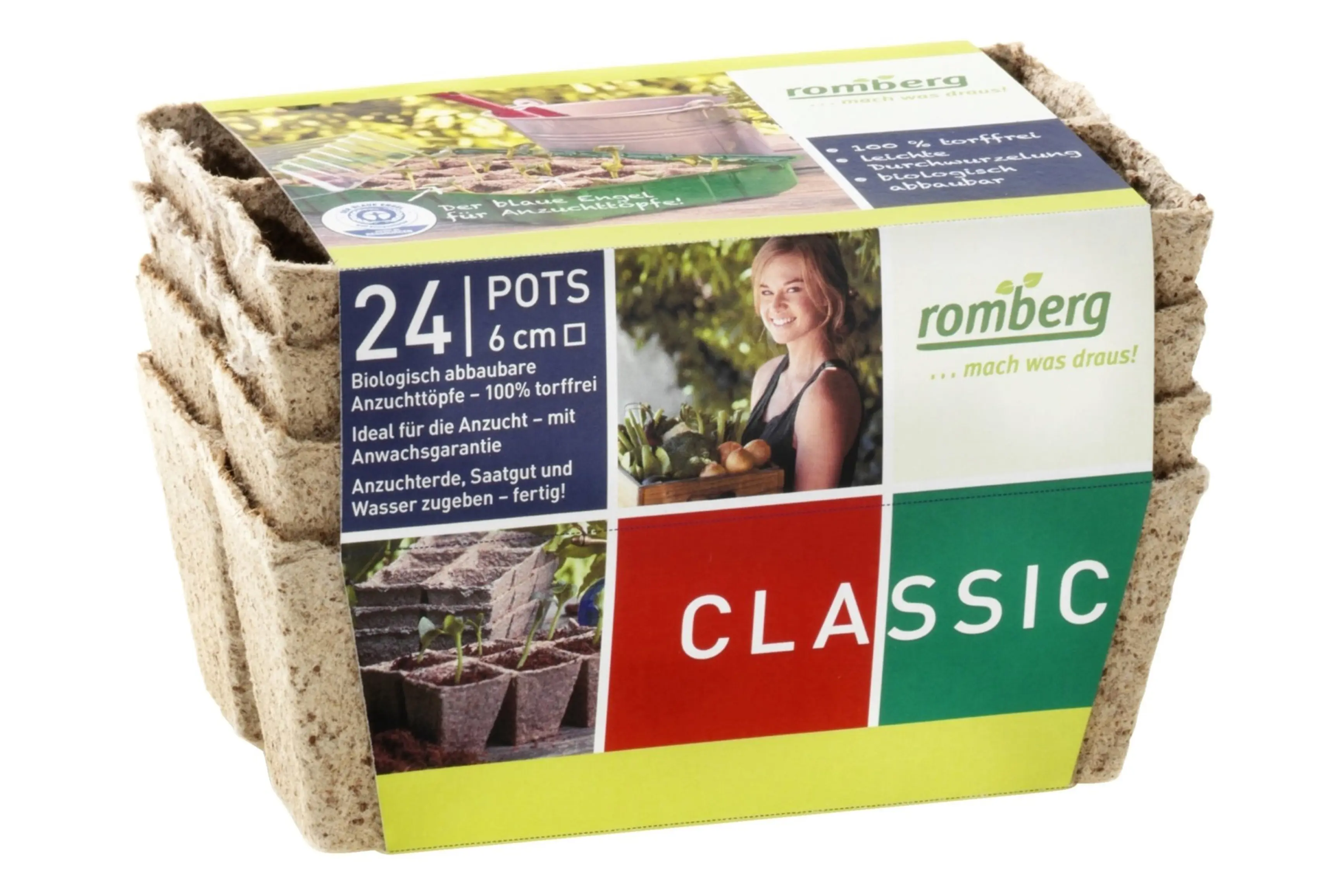 Biologisch afbreekbare vierkante plantpotjes gemaakt uit samengeperste vezels. De potjes zijn 100% vrij van turf en bevatten geen enkel chemisch additief.