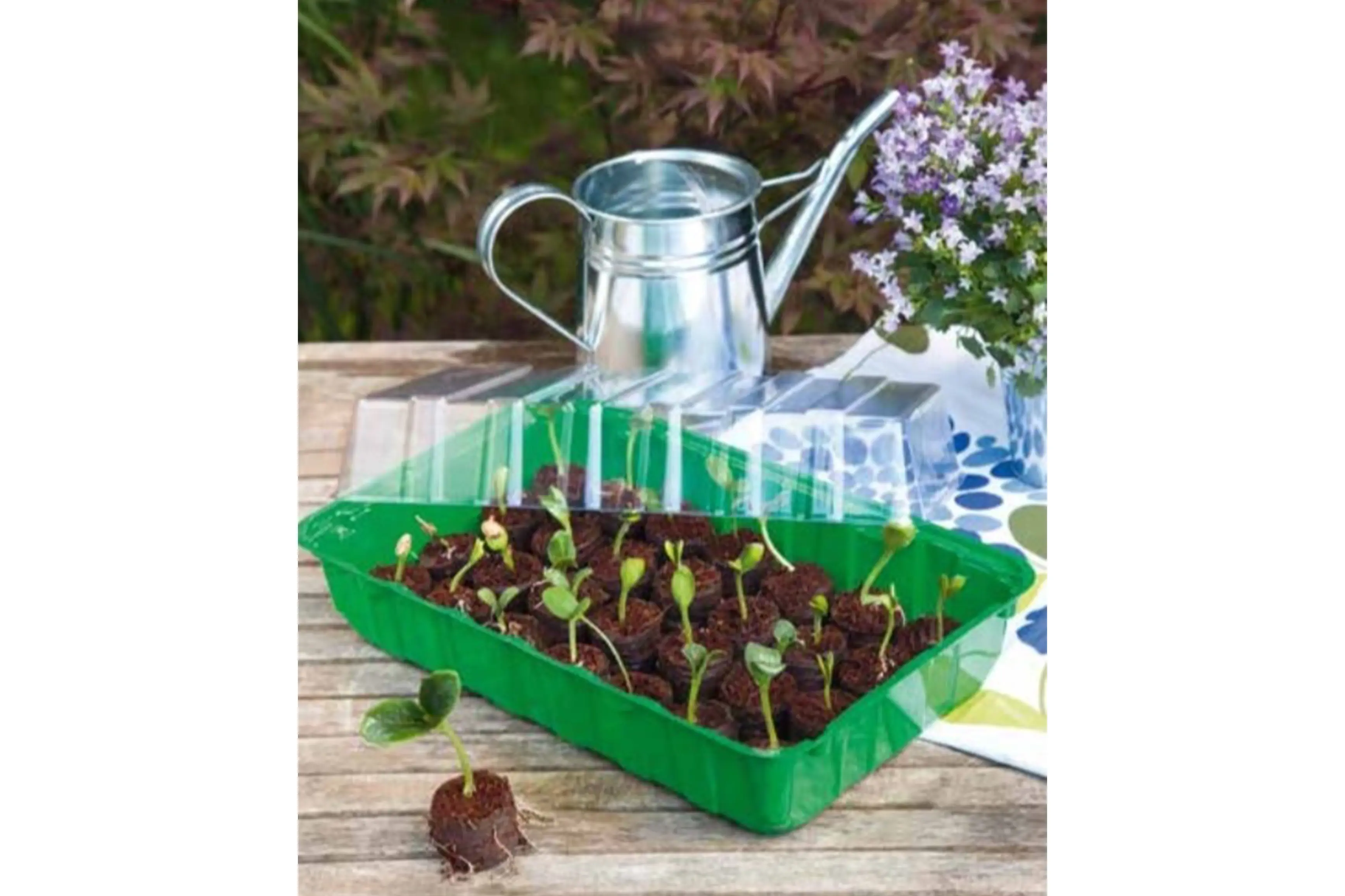 Deze handige kweekkas wordt geleverd met 24 vierkante kokospotten van 5 cm. Onder het transparante deksel ontstaat het perfecte opkweekklimaat voor de groei van groenten, kruiden, bloemen en andere planten.
