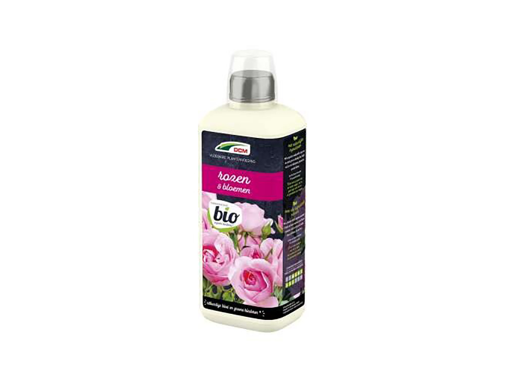 DCM Vloeibare Meststof Rozen en Bloemen, voor de bijbemesting van rozen en bloemen. De organische voedingsstoffen zorgen voor een goede groei en uitbundige bloei. Verrijkt met ijzer voor donkergroene, glanzende en gezonde bladeren. Toepasbaar in de biotuin.