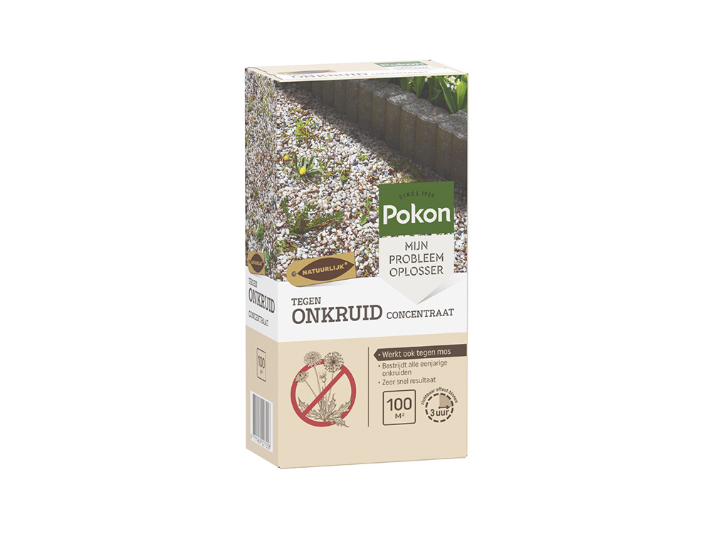 Bestrijd snel en effectief éénjarige onkruiden tussen grind en op onverharde terreinen met Pokon Tegen onkruid concentraat. Het middel doodt alle bovengrondse delen van ongewenste planten zoals brandnetels, zevenblad, distels en klaver en het kan ook gebruikt worden tegen mos.