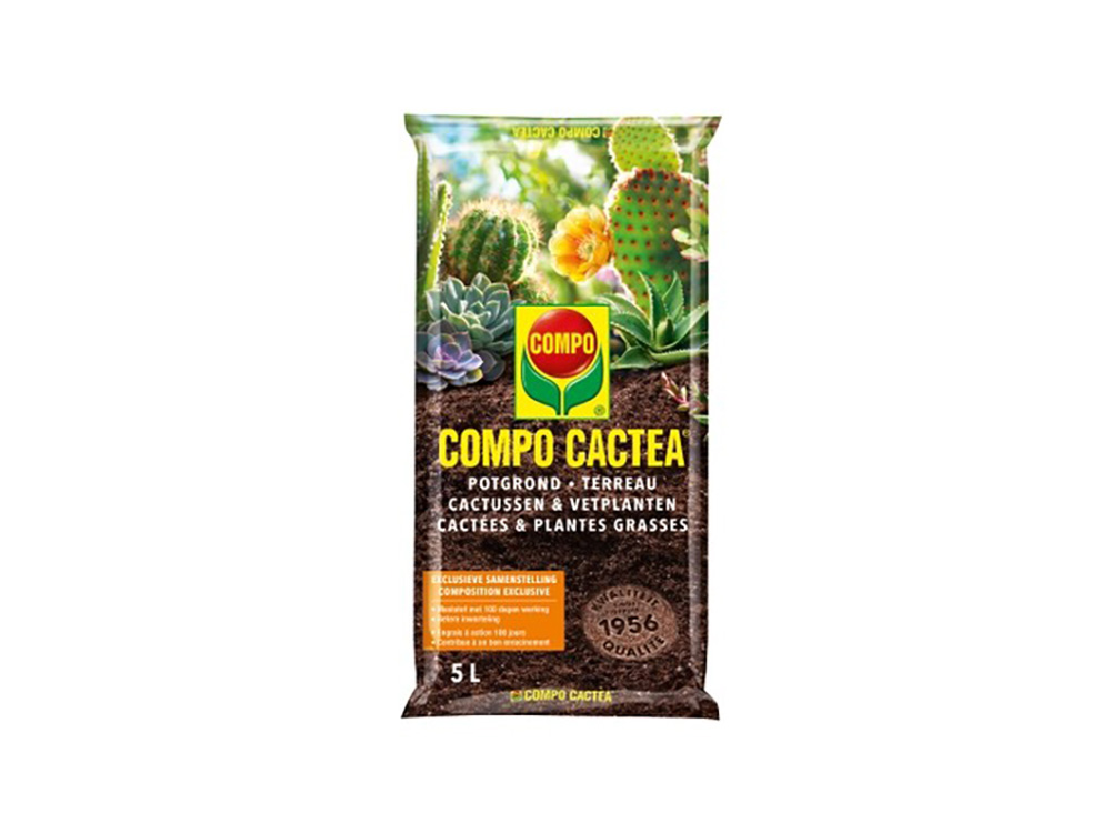 Specifieke potgrond van Compo voor alle soorten cactussen en vetplanten. Met extra dosis zand voor een fijne en doorlaatbare structuur. Betere samenstelling dankzij een hoger turfaandeel. Bevat een meststof met lange werking (100 dagen).