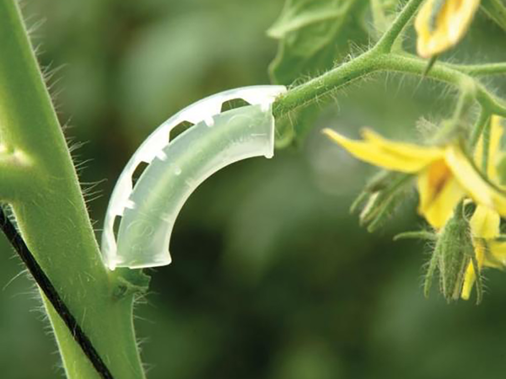 Deze clips voorkomen dat de stengel van de tomatentros kan doorknikken. Als deze doorbuigen zal water en voeding moeizamer tot bij de vruchten geraken waardoor deze niet optimaal kunnen groeien en kleiner blijven. Deze worden gebruikt in de professionele tomatenteelt.