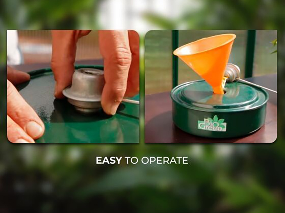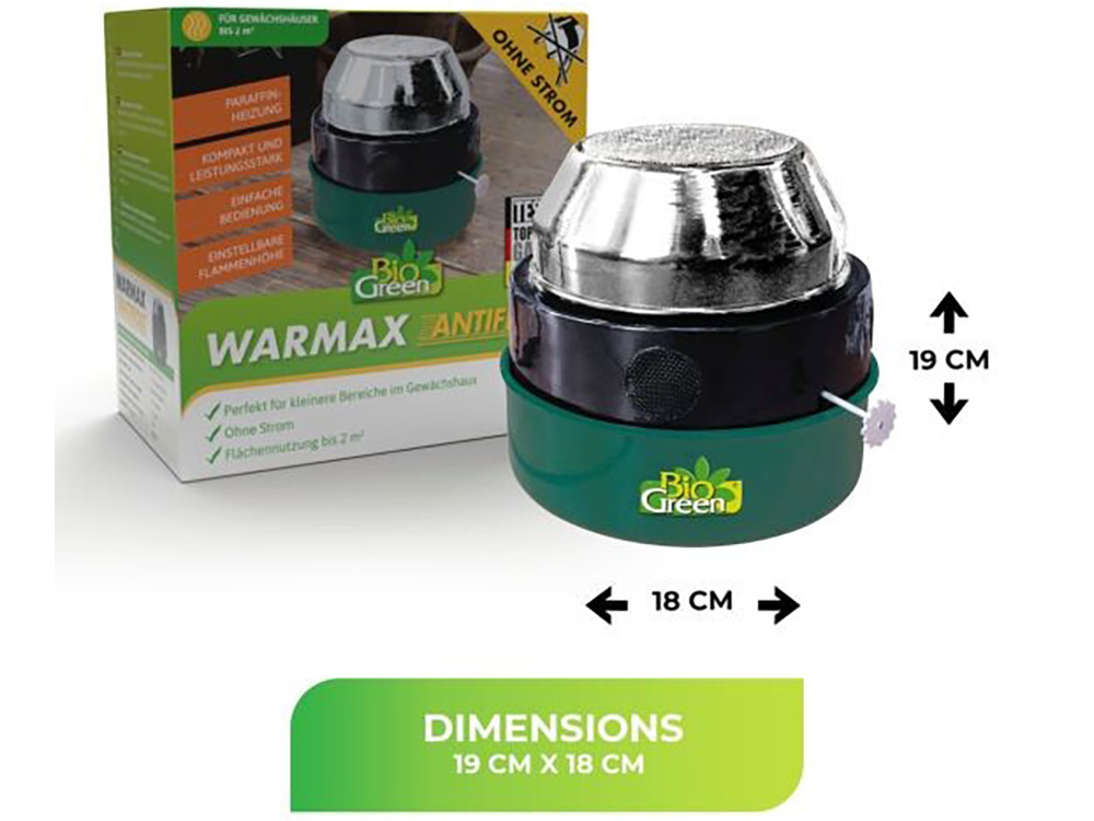 Door het gebruik van brandstof werkt dit toestel zonder elektricitieit en is het ook véél duurzamer dan zijn elektronische varianten. Het kacheltje heeft een bereik van ongeveer 2 m² en kan eenvoudig op de grond in de serre geplaatst worden. Het is compact en neemt niet veel plaats in.