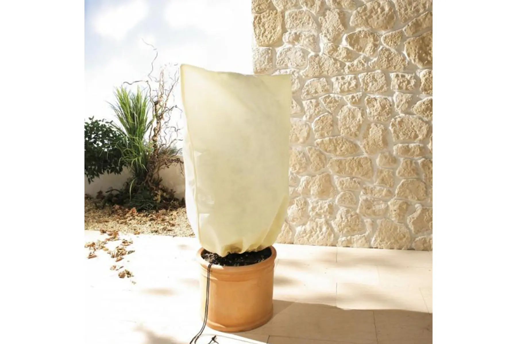 Deze plantenhoes is de ideale bescherming voor exotische en andere vorstgevoelige planten zoals palmen, oleander, laurierboom, olijfboom,.. Hij is gemaakt uit fleece van zeer hoge kwaliteit en biedt dus een uitstekende bescherming tegen uitdrogende, koude wind en vorst. De beschermhoes is tevens water-, licht- en luchtdoorlatend wat voor de planten van groot belang is. Zo mag je de hoes gerust 3 tot 4 maanden rond de plant laten zitten.