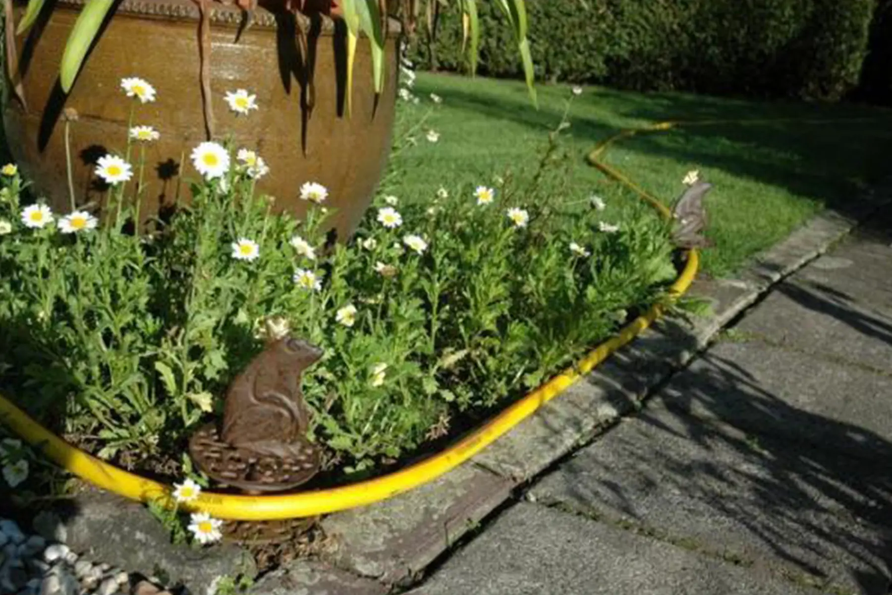 Op de hoek van een pad of muur glijdt de waterdarm via de geleider vlotter voorbij. Voorkom op die manier hardnekkig trekken en sleuren.