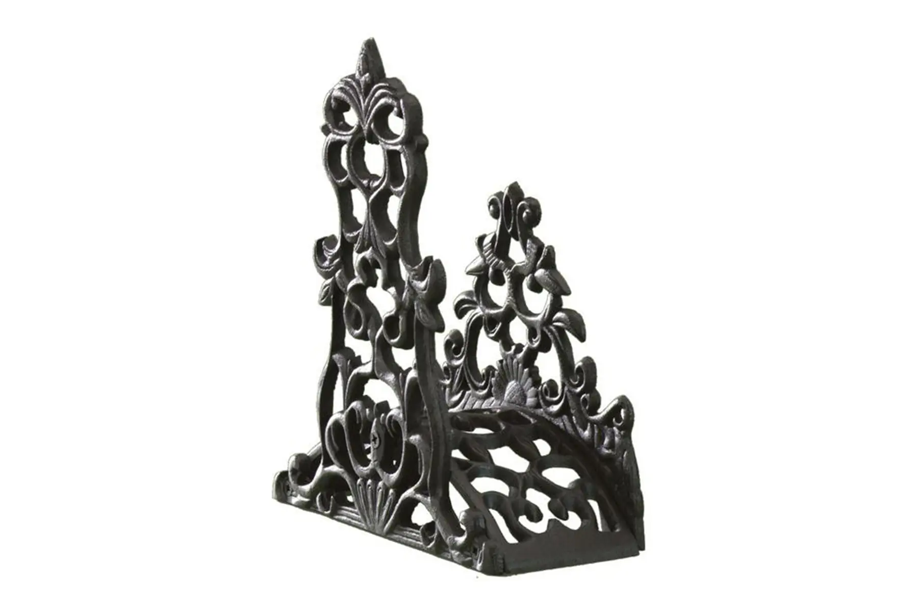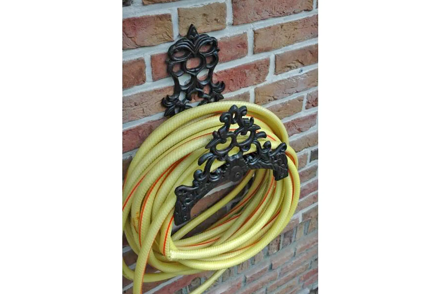 Zowel de voorzijde als de achterzijde van de tuinslanghouder heeft sierlijke vormen.