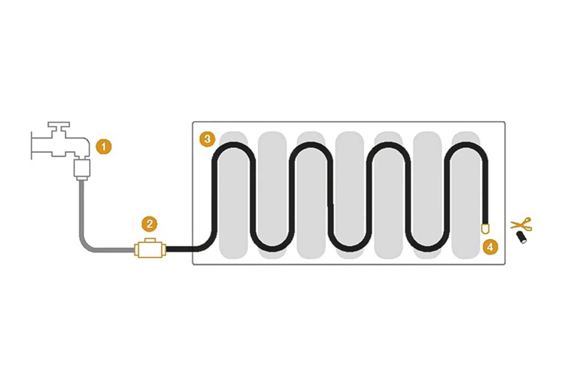 Met de bijgeleverde grondankers kan je de slang in de grond bevestigen. Je kan ervoor kiezen om de slang op de grond te leggen of in de grond in te graven. Is de slang te lang voor jouw tuinbed, dan kan je de slang ook eenvoudig op maat afknippen met een schaar.
