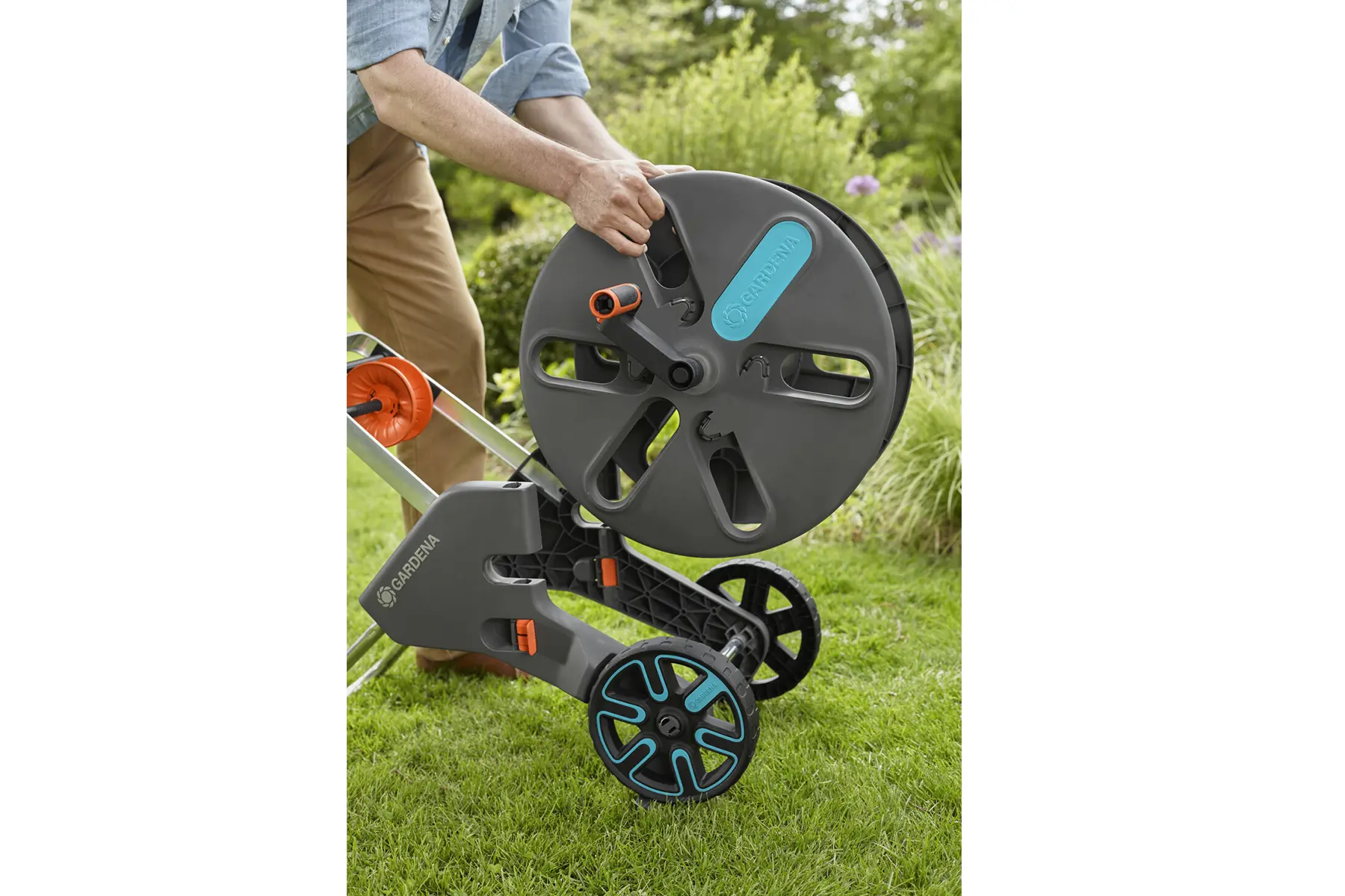 De Gardena CleverRoll L Easy is een complete slangenwagen die staat voor een robuuste kwaliteit met een uitstekende stabiliteit. Het geheel is vlot te verplaatsen met de hendel en wielen, en dankzij de innovatieve vorstbescherming kan hij probleemloos het hele jaar door buiten staan.