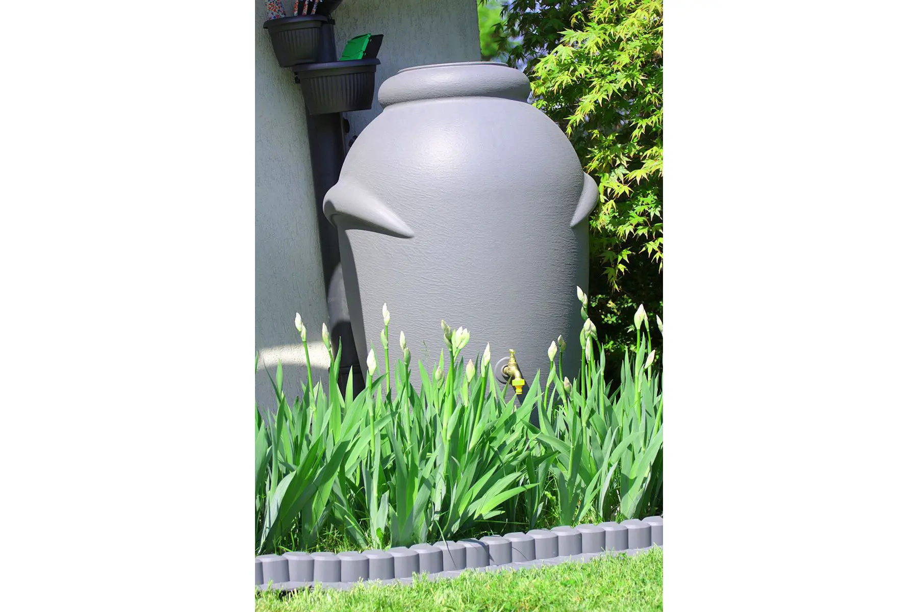 Mooie decoratieve kunststof regenton voor de opvang van regenwater. Deze kwalitatieve regenton heeft bovenin een opening met deksel van Ø 26 cm. Ze is gemaakt uit duurzaam, UV-bestendige kunststof en ziet er net uit als een grote waterkruik.